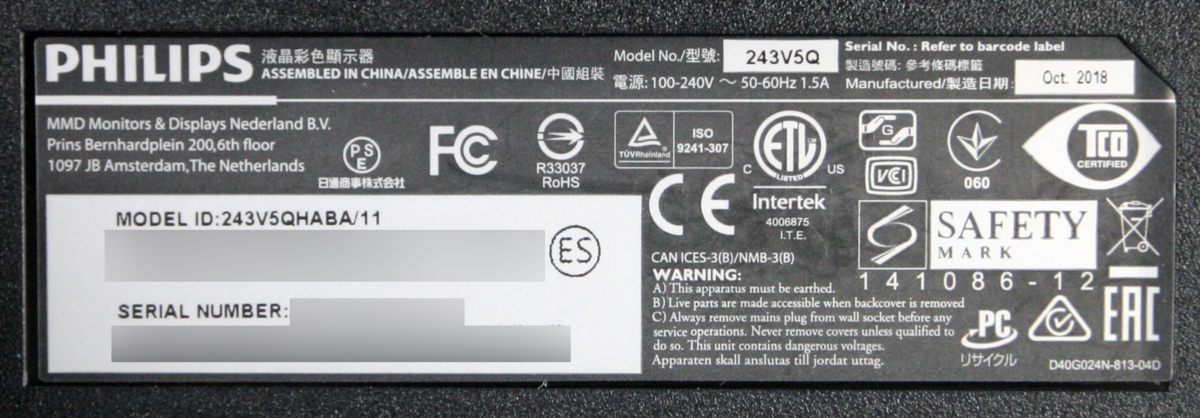 | M◆PHILIPS(フィリップス)/23.6型ワイド液晶/243V5QHABA/11/MVAパネル/W-LEDシステム/フルHD/VGA、DVI、HDMI、スピーカー |