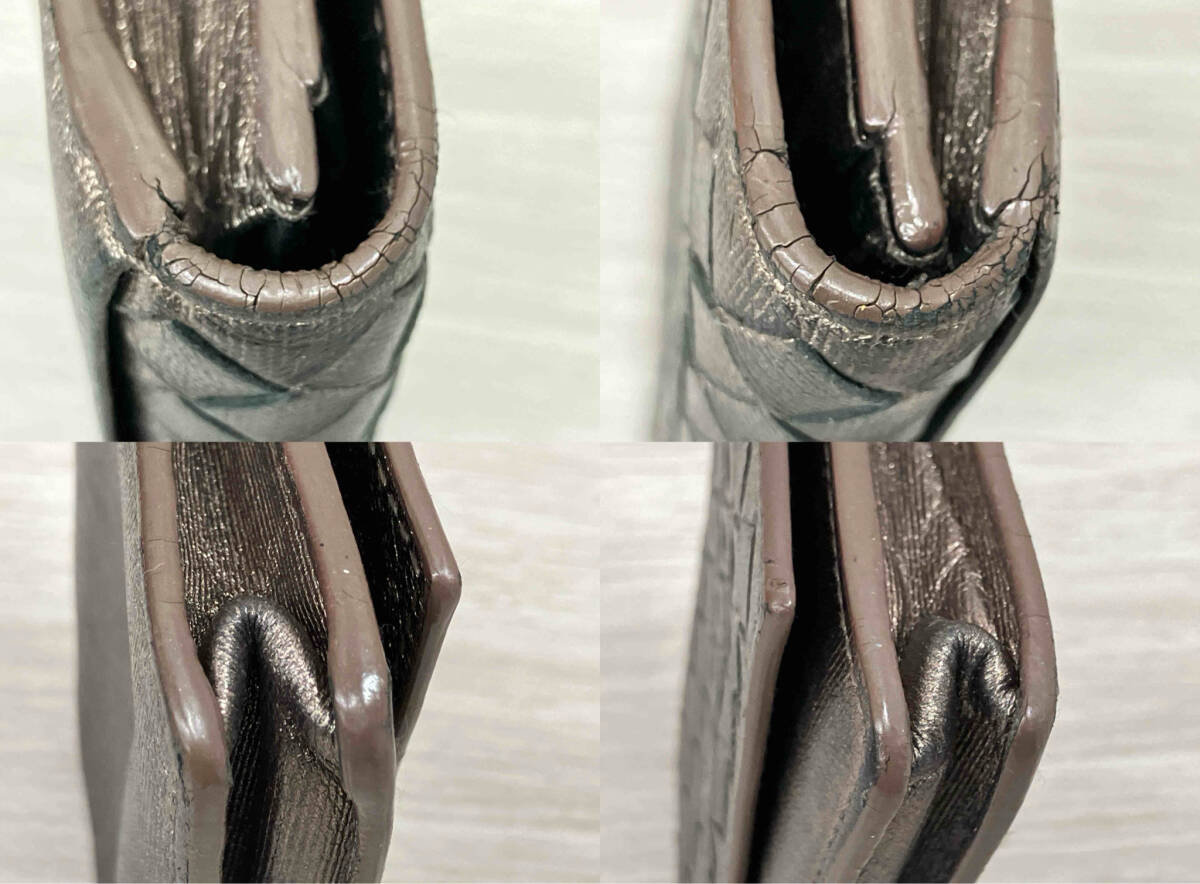 | スレ、角スレ、小傷、汚れ、変色、型崩れ、凹み、クセ・シワ小、金属傷 縁若干のひび割れ、 | ||||||