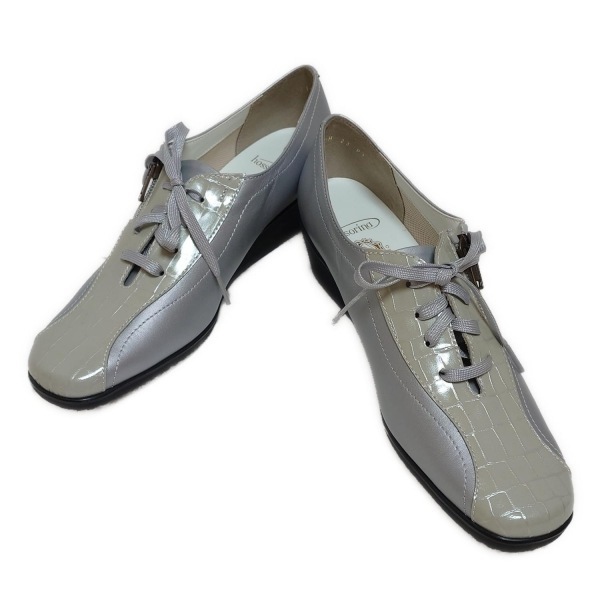 ギンザヨシノヤ 銀座ヨシノヤ/Yoshinoya シューズ 23 - レザー シルバー×グレー レディース 型押し加工/ウェッジソール 美品 靴
