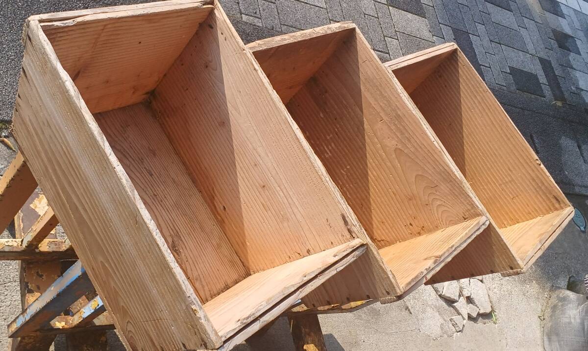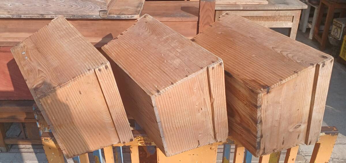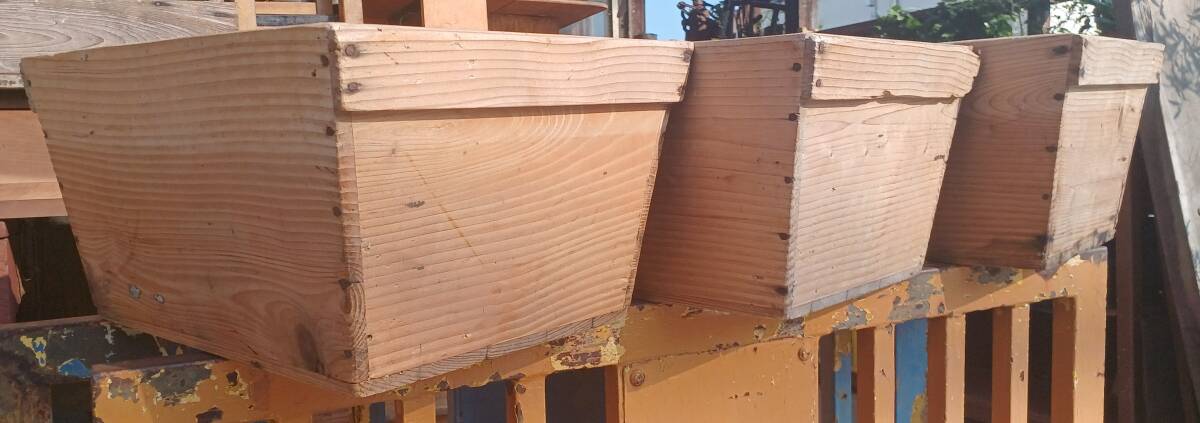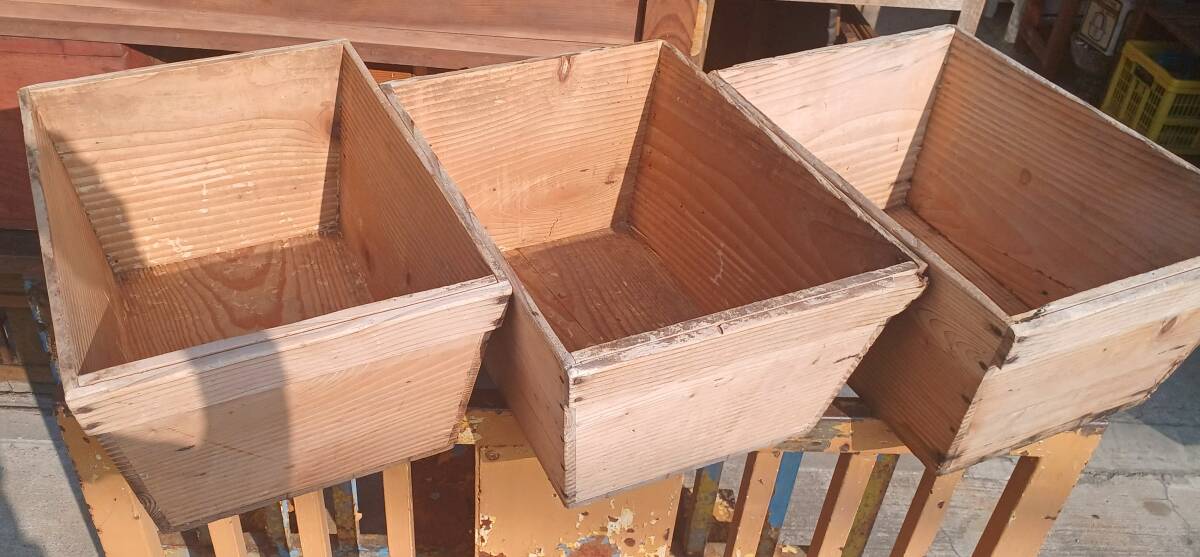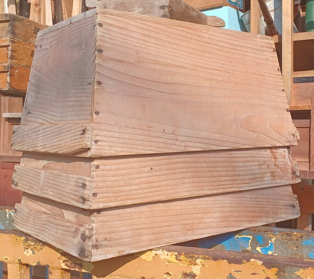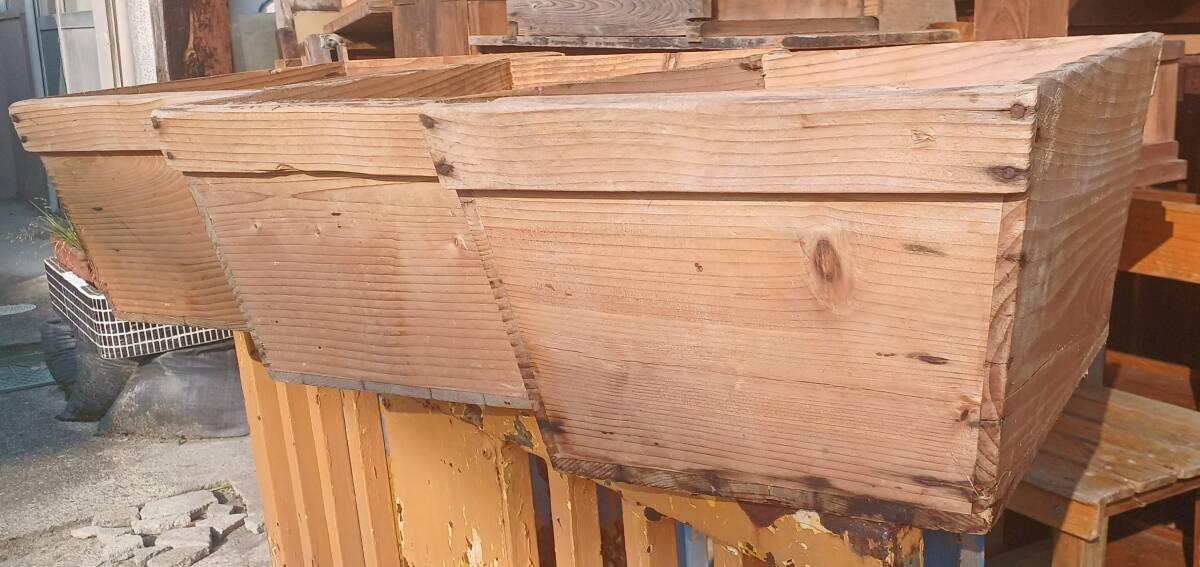 !秀品! 昭和初期・木工品★「一斗升3個」口縦444×口横318・底縦361×横256・高さ220ミリ・2,1キロ!(詳細不明)<BR>