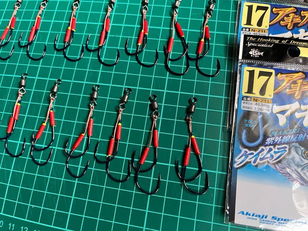 アキアジマキリケイムラ17号を浮きルアー用にアシストフック作成しました