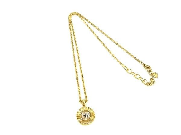 ■美品■ NINA RICCI ニナリッチ ラインストーン ハート ネックレス ペンダント アクセサリー レディース ゴールド系 DF9023