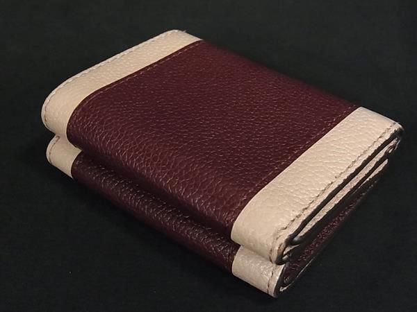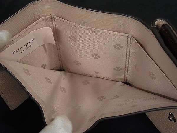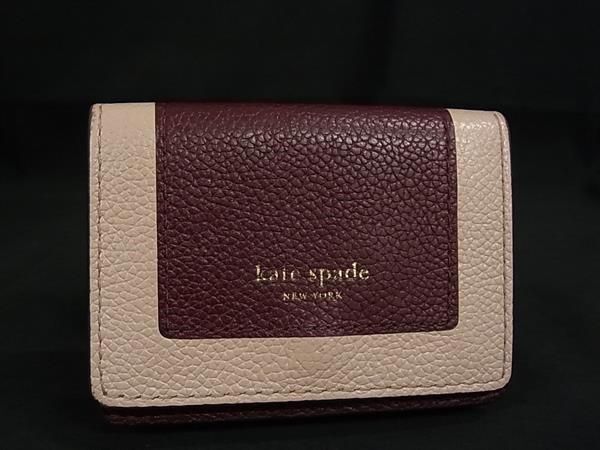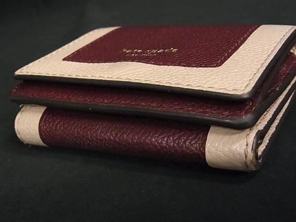■美品■kate spade ケイトスペード レザー 三つ折り 財布 ウォレット 札入れ 小銭入れ レディース ワインレッド系×ピンク系 DF6752