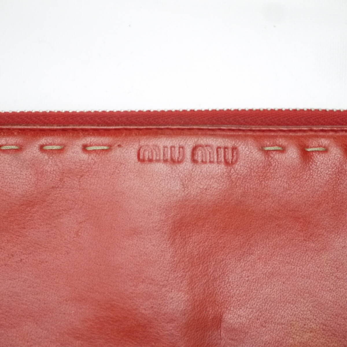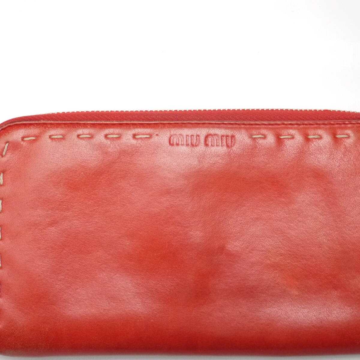 ◇ イタリア製!   レトロな 激レア商品!                 ミュウミュウ の    レッド系  本革 レザー素材に    白い糸の ステッチ(縁取り)デザインと   中央の  miumiu 型押しロゴマーク付き デザインが アクセントに成っていて  ヴィンテージ感のある♪       ミュウミュウ  本革 レザー製   ラウンドファスナー 長財布・ウォレット に成ります。