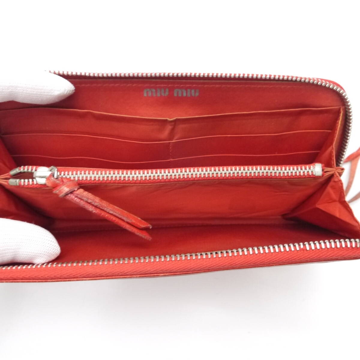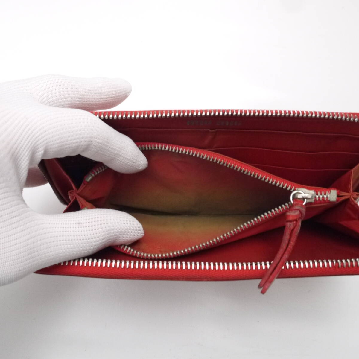 $ 美品 $ レトロ♪■ ミュウミュウ ■ miumiu ■ ステッチ入り 本革 レザー製・ ラウンドファスナー 長財布 ウォレット■ 赤 レッド ロゴ入