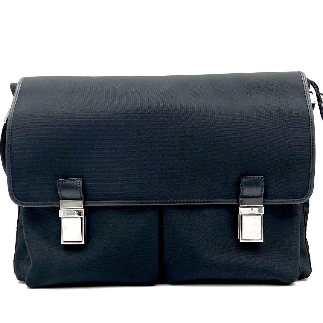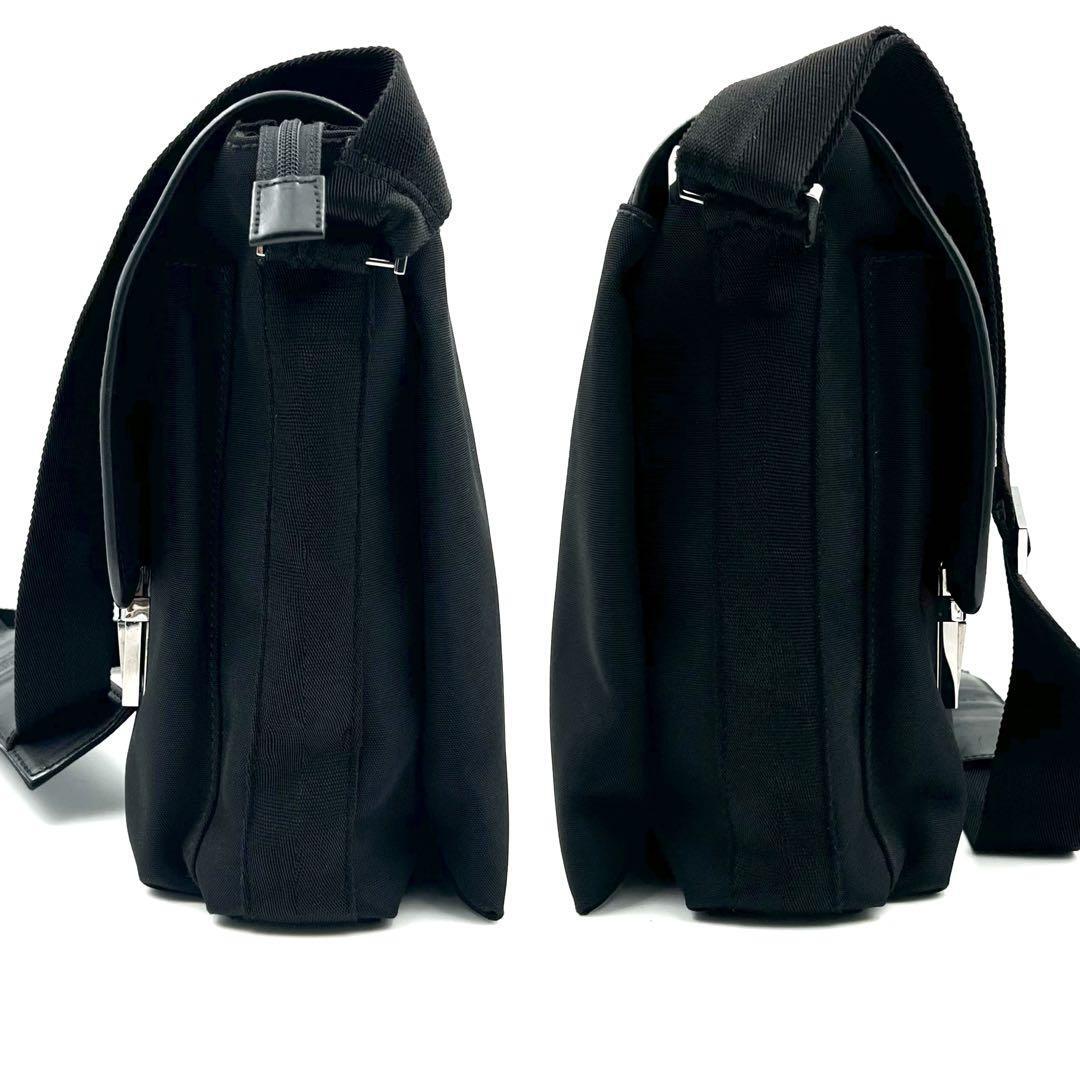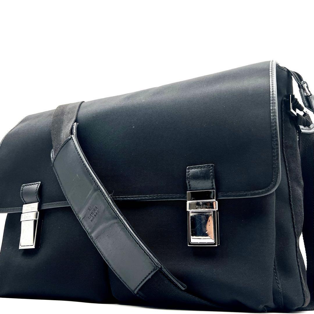 《未使用級》GUCCI グッチ メンズ ビジネス ナイロン レザー ショルダーバッグ メッセンジャーバッグ A4 ブラック 斜め掛け