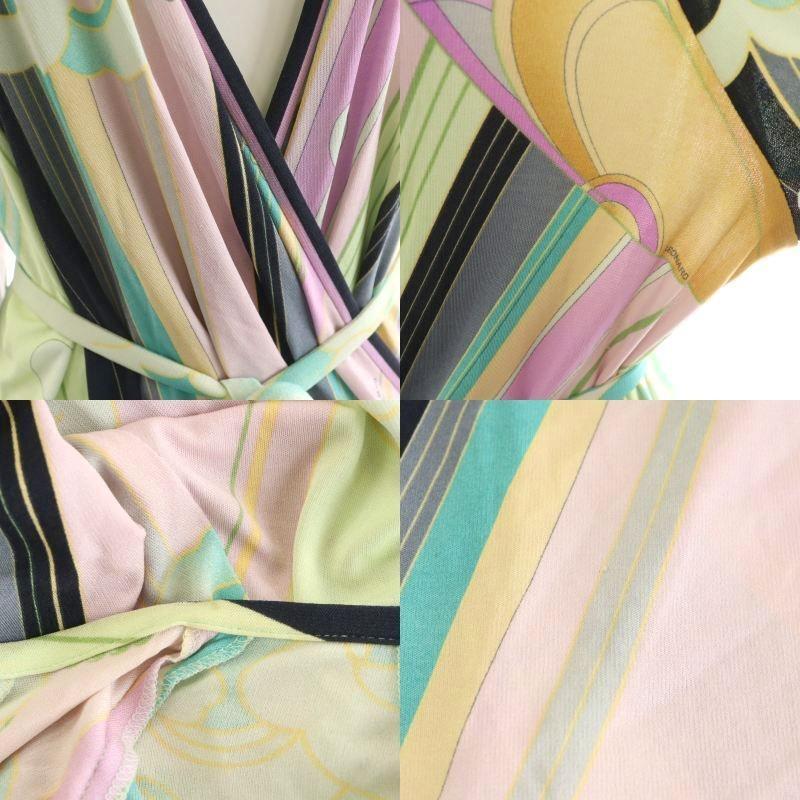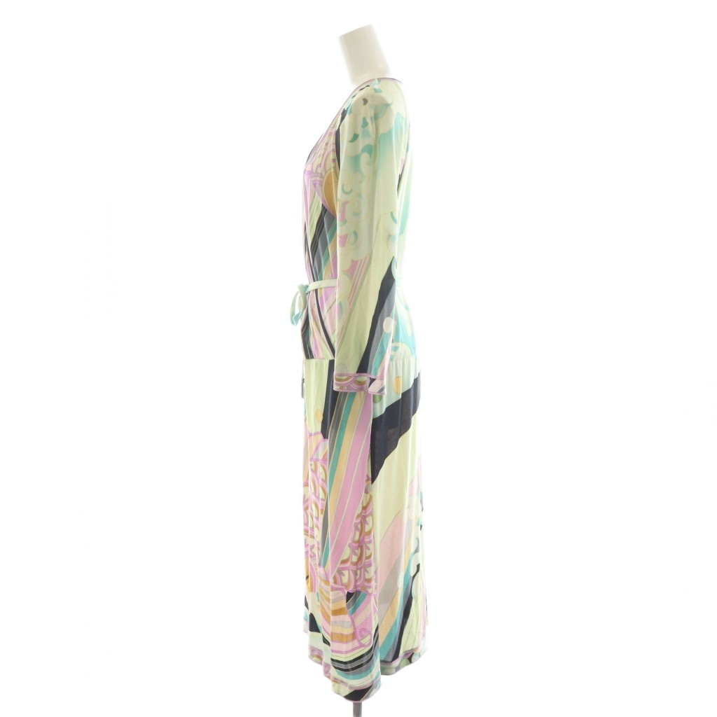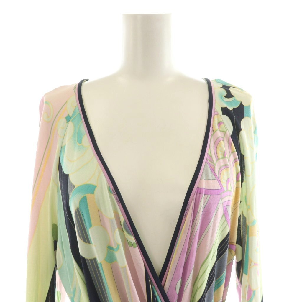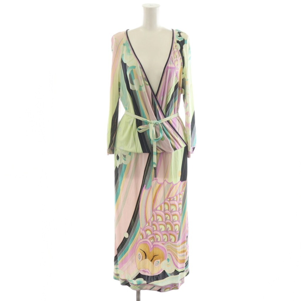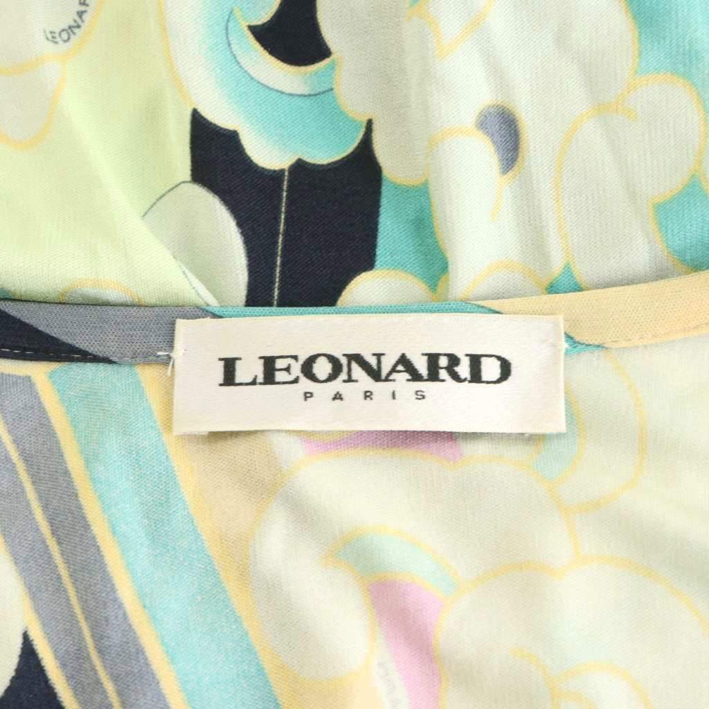 レオナール LEONARD ワンピース ロング丈 長袖 カシュクール 総柄 シルク 絹 46 マルチカラー ライトグリーン ピンク 紺