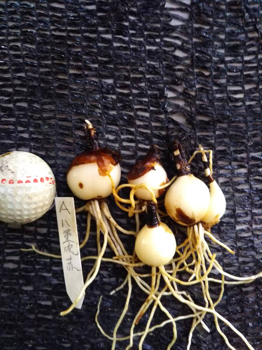 球根、ヒガンバナ、赤八重咲き、5球です。画像のみの判断でお願いします。