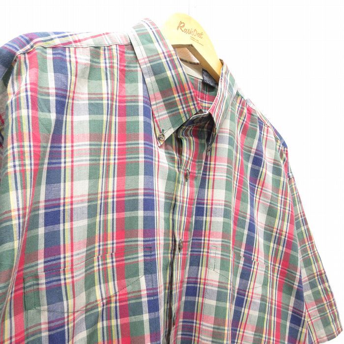 【商品名】 XL★古着 バンヒューセン 半袖 シャツ メンズ 大きいサイズ ボタンダウン ベージュ他 チェック