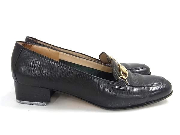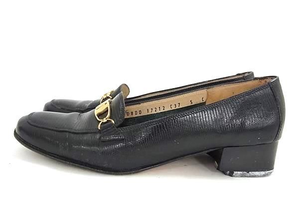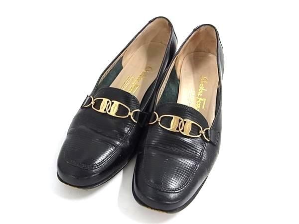 Salvatore Ferragamo フェラガモ ヴァラ リザード型押しレザー ローヒール ローファー 表記サイズ 5(約22.0cm) 靴 ブラック系 DF7788