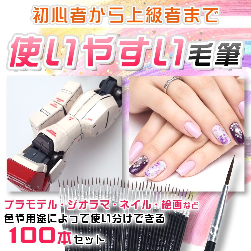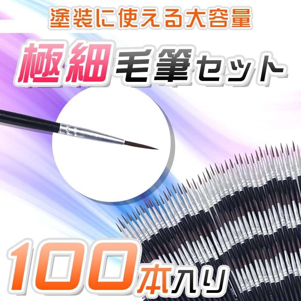 筆セット ペイントブラシ 面相筆 極細 握りやすい 使い分け 塗装 カラーリング 100本セット (ブラック)