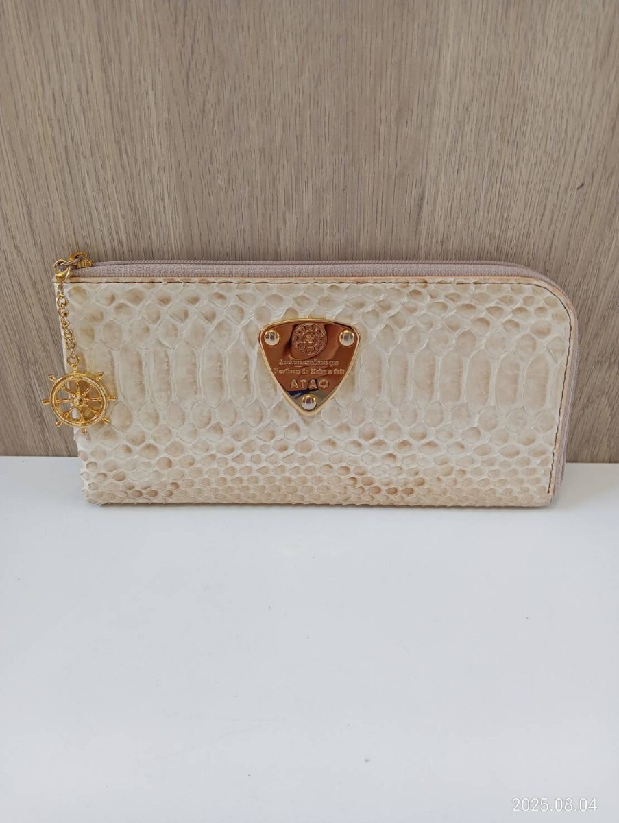 【中古品】 アタオ ATAO ラウンドジップ ウォレット 長財布 パイソン ゾチックレザー 舵チャーム 現状品