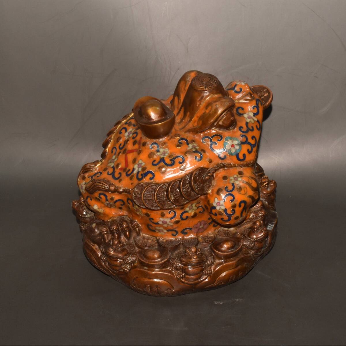【超珍館蔵】銅製 景泰藍 琺瑯彩 元寶金蟾 置物 賞物 古賞物 古董品 古美術品 時代物 旧家蔵出 稀少珍蔵品