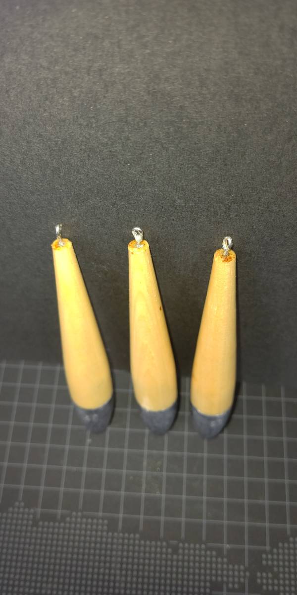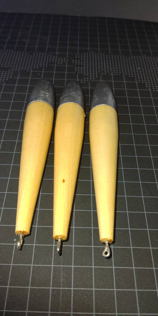 他社との比較写真を掲載しました。私の作成したシンカーは号数がかわっても長さサイズは同じです。