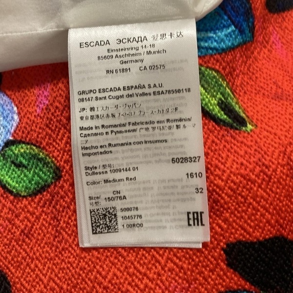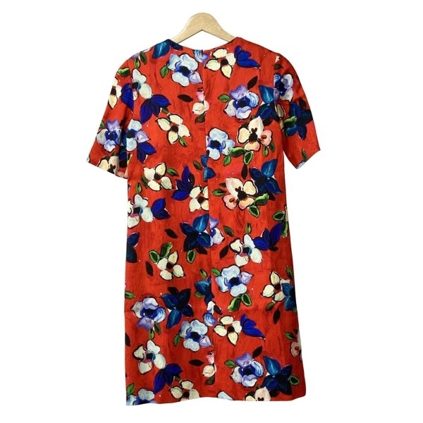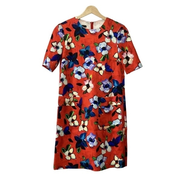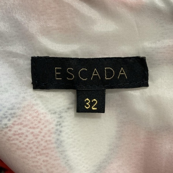 エスカーダ ESCADA サイズ32 S - レッド×ダークネイビー×マルチ レディース クルーネック/半袖/ひざ丈/花柄 美品 ワンピース