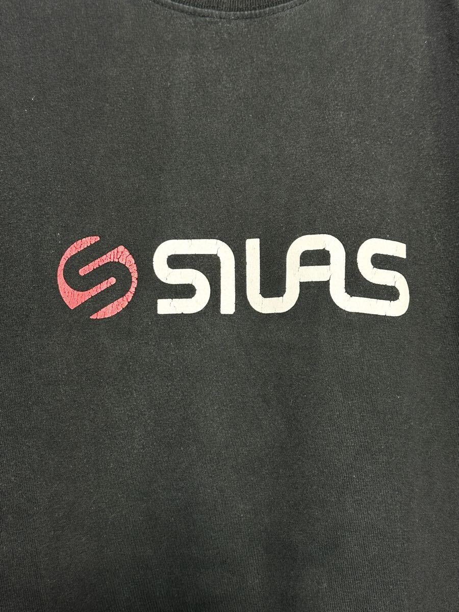 SILASのTシャツの出品です。色はブラック、サイズはLサイズです。上記に採寸しているものを記載しているので参考にしてください。最近出ていない定番ロゴのTシャツです フロントのタグにはひび割れがあり、多少毛羽立ちがあります。画像を載せているので参考にしてください。汚れ等は記載するようにしていますが、中古品の為小さな汚れや小キズ等の見落としがある可能性がありますのでご了承頂ける方のみ入札をお願いします。神経質な方は入札をお控えください。写真等で商品をよくご確認の上、入札お願い致します。なお落札後は、ノークレームノーリターンでお願い致します。何かご不明な点やご質問等がございましたらお気軽に必ずご連絡ください | |
