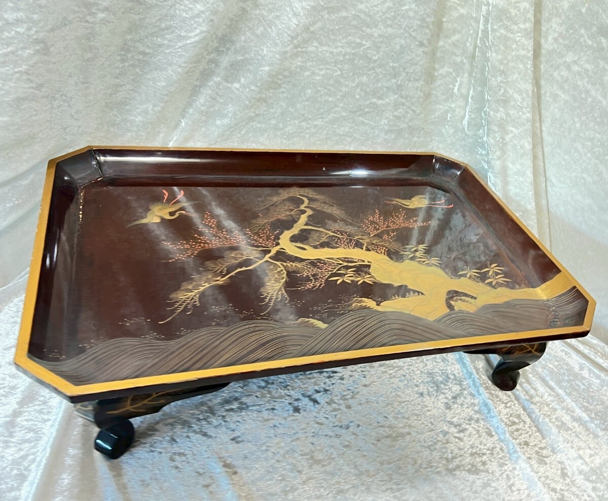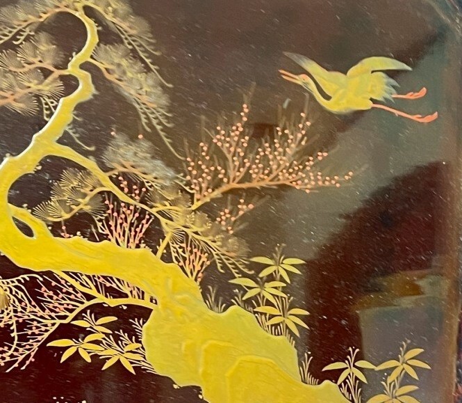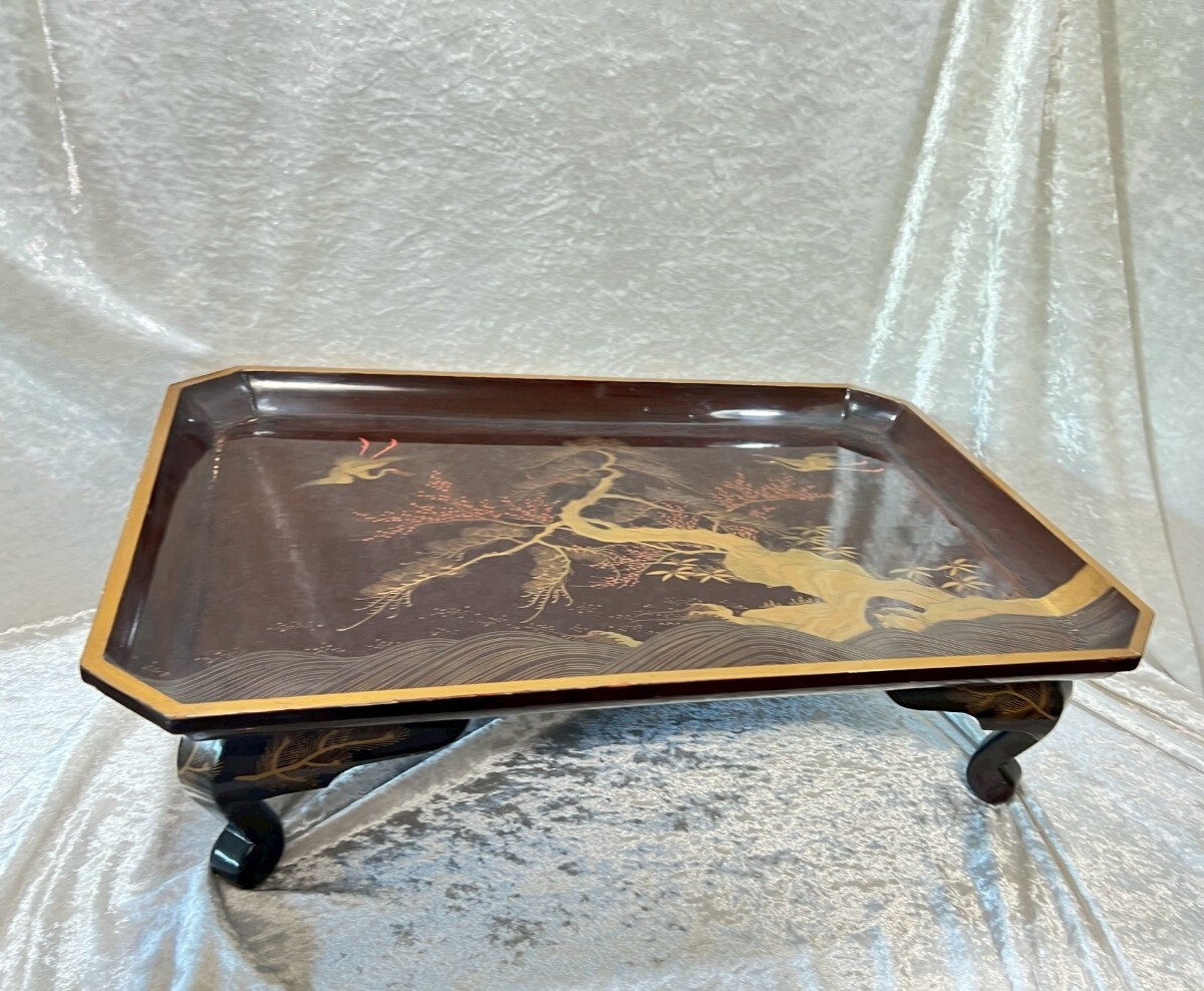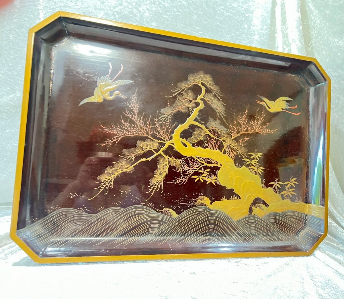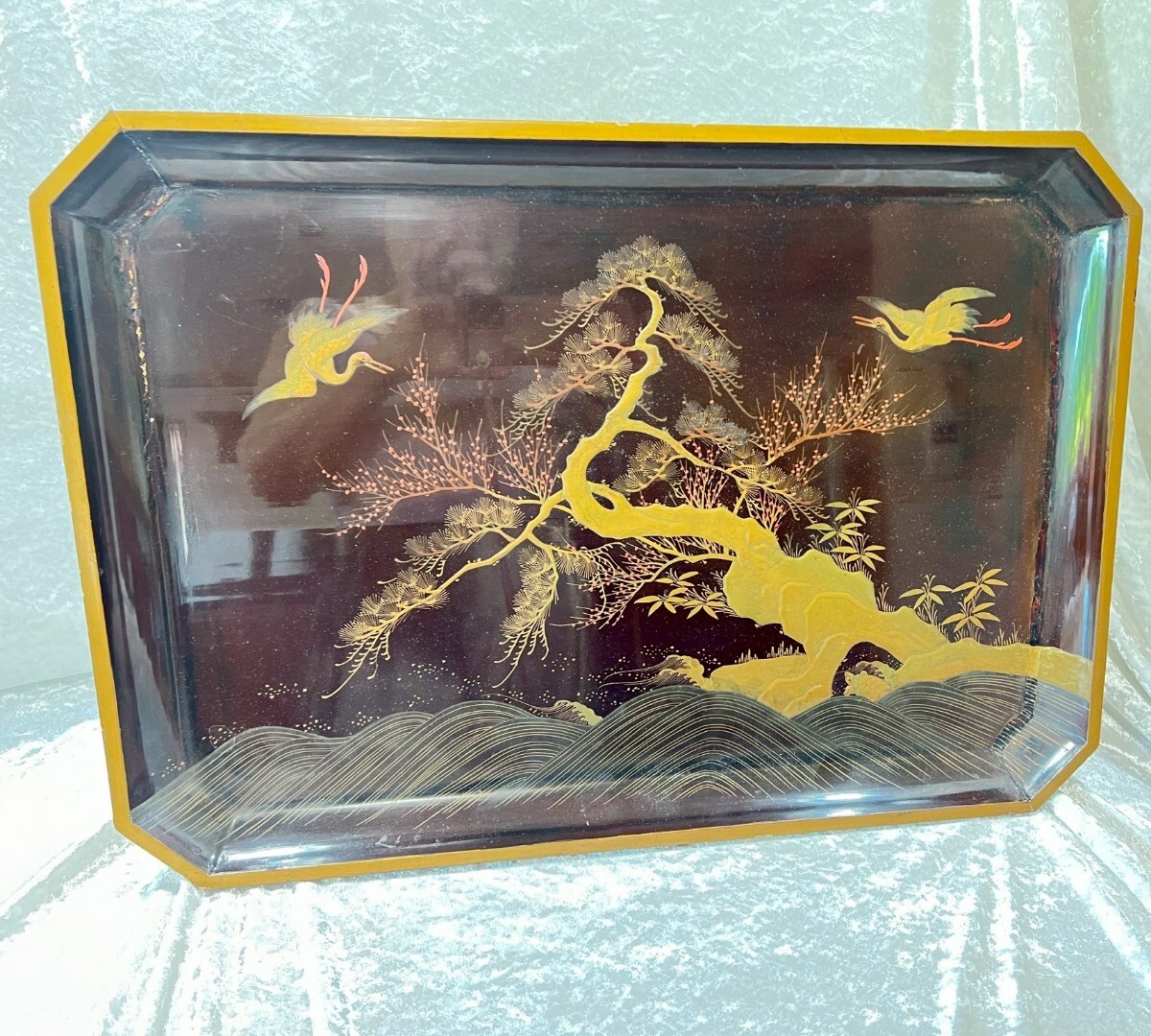【漆器・蒔絵】金蒔絵の大盆 みだれ盆 角盆 松竹梅に双鶴文 高蒔絵 ディスプレイ用品 インテリア用品 骨董品 アンティーク▼△▼△▼△▼△▼△▼△▼△▼△▼△▼ 商品説明 ▼△▼△▼△▼△▼△▼△▼△▼△▼△▼ 商品名:金蒔絵の大盆