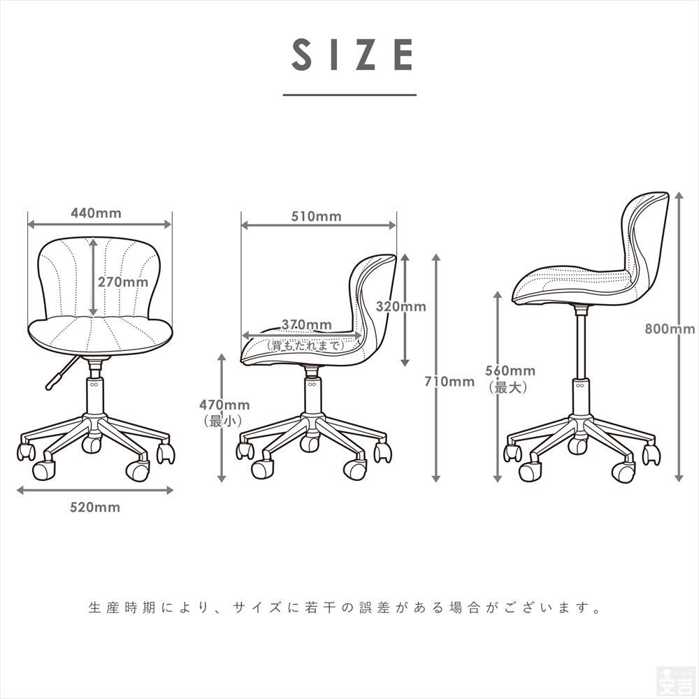 仕様 | 座面360度回転、ガス昇降式 |