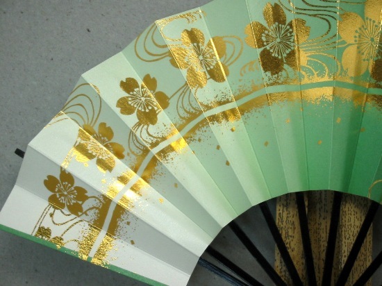 舞扇子 A1513 金箔桜流水横線砂ちらし 草横ぼかしシルバー地 【箱なし】