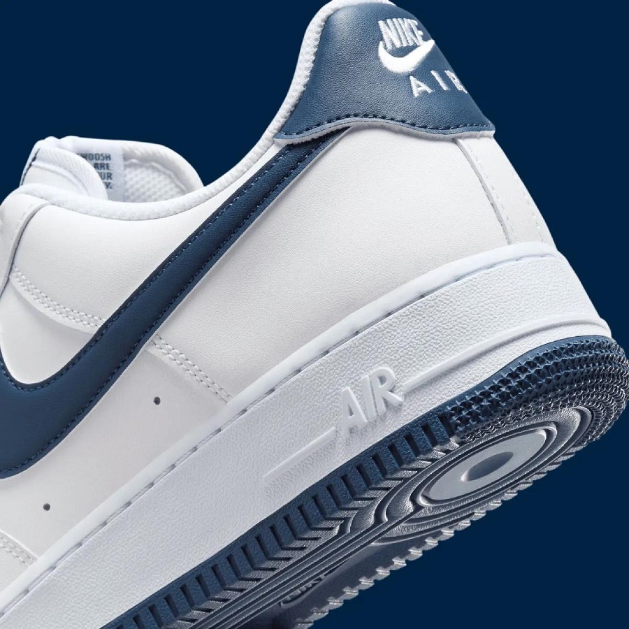ホワイトのアッパーにネイビーのスウッシュとアウトソールを配し、伝統のスタイルを構成。