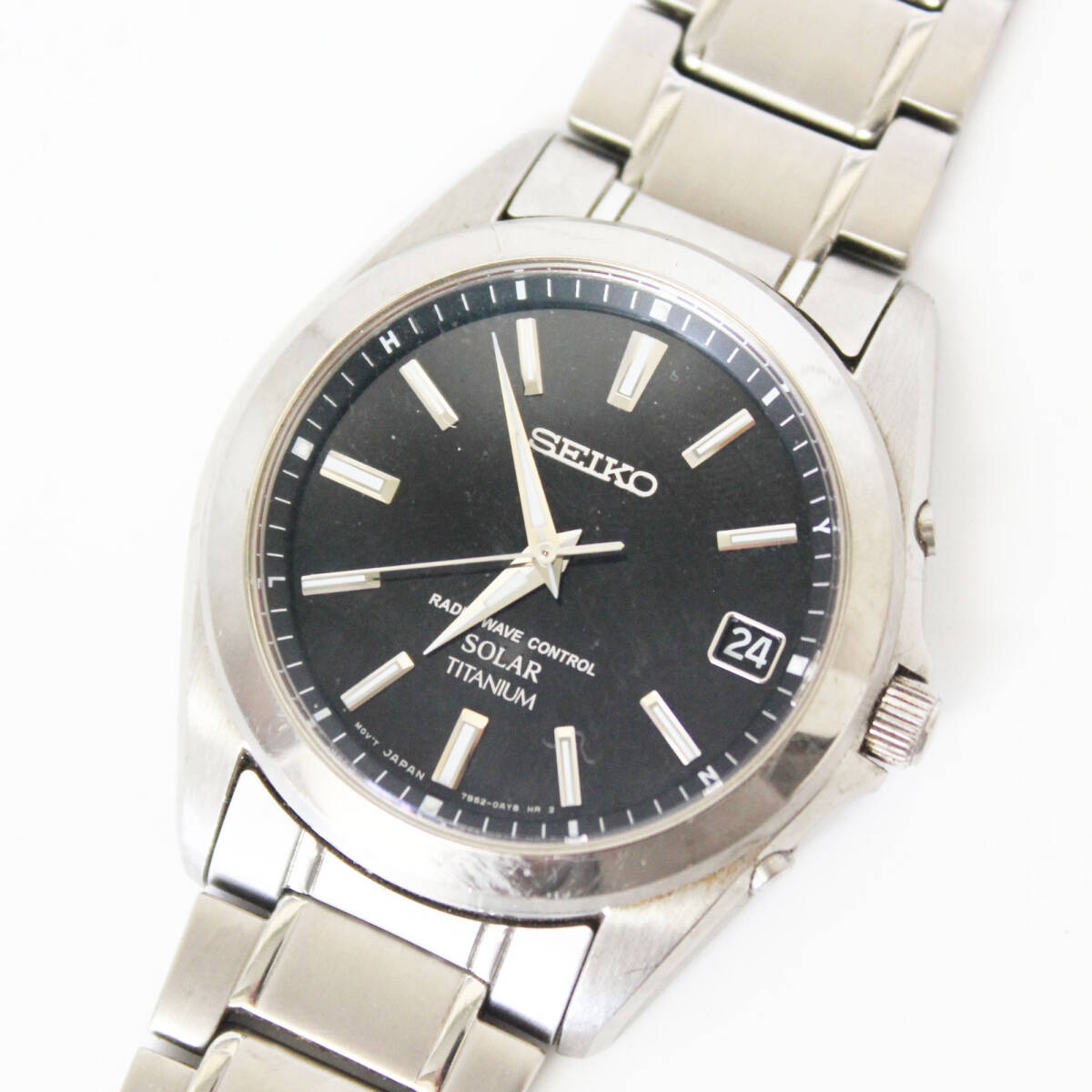 W250805-24 SEIKO SOLAR セイコー ソーラー 7B52-0AK0 メンズ腕時計 ソーラー デイト 稼働品 文字盤ブラック チタン チタニウム