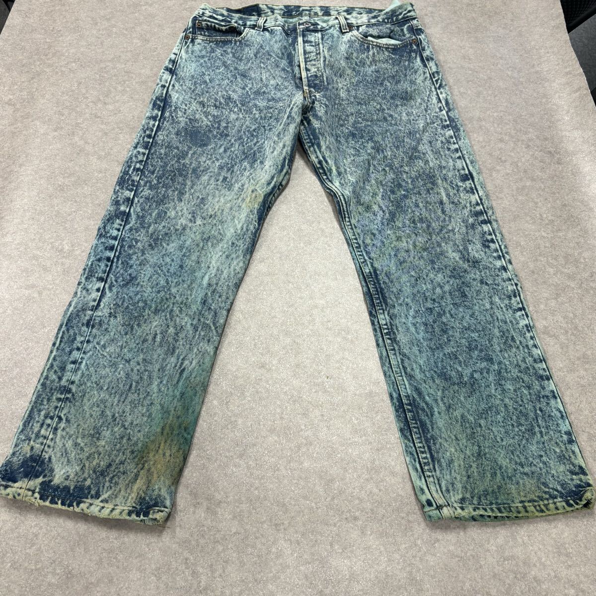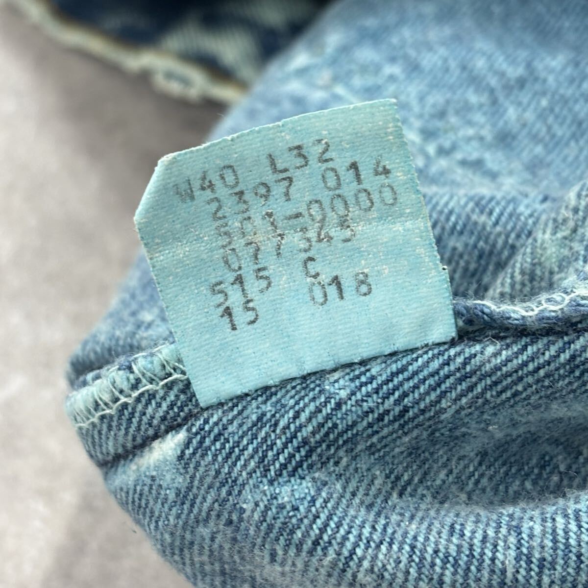 非常にインパクトのあるケミカルウォッシュ仕様で、90年代らしいストリート感のある1本です。