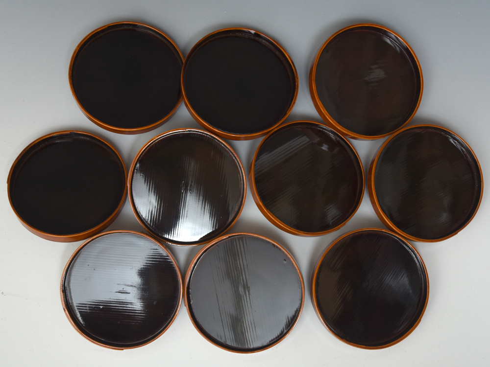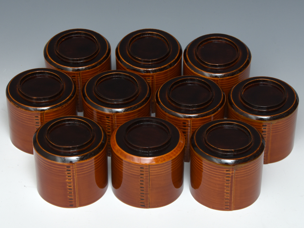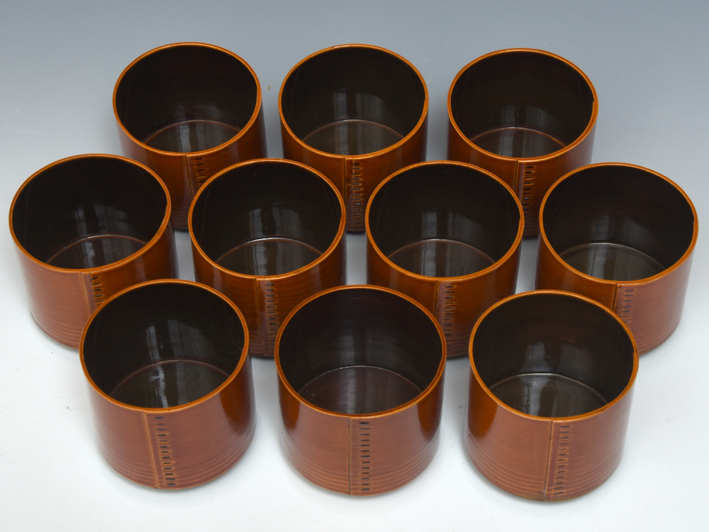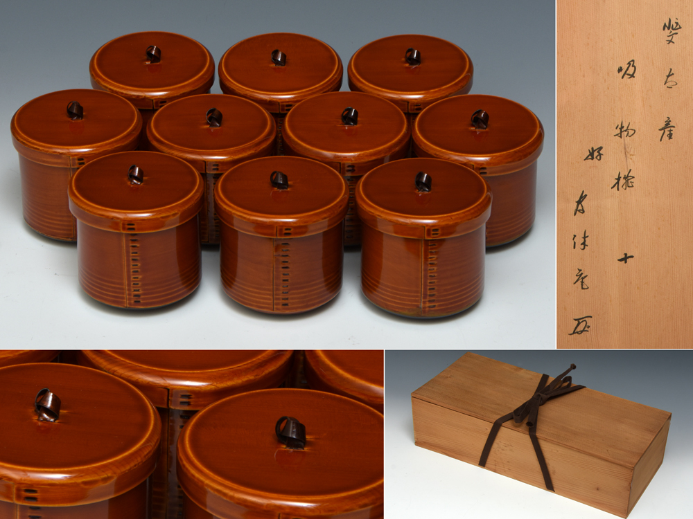 飛騨産 吸物椀10客 官休庵 13代 有隣斎(花押) 春慶塗 懐石道具 茶懐石 茶道具 木製漆器 漆工芸 漆芸 |