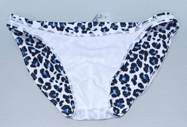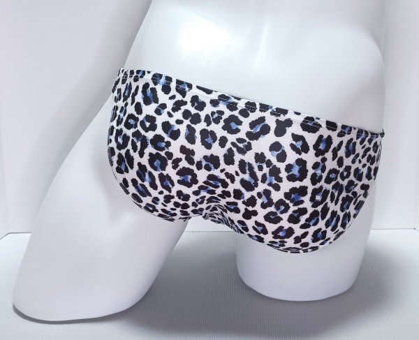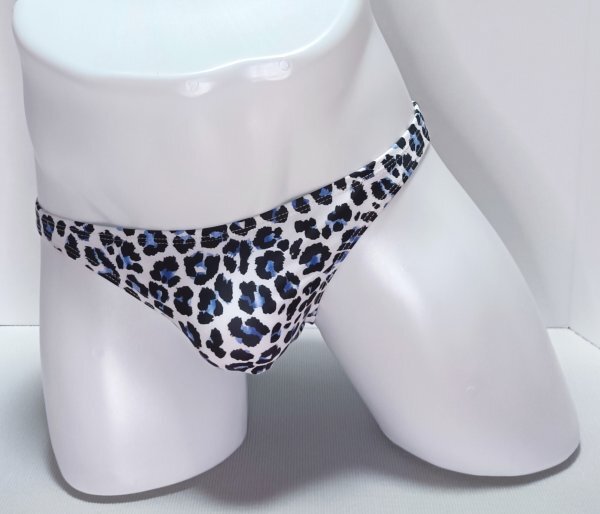 [新品] ローライズ ハーフシーム フルバック ビキニ リゾート メンズ水着 白系豹柄 日本S~Mサイズ(タグ表記 S)