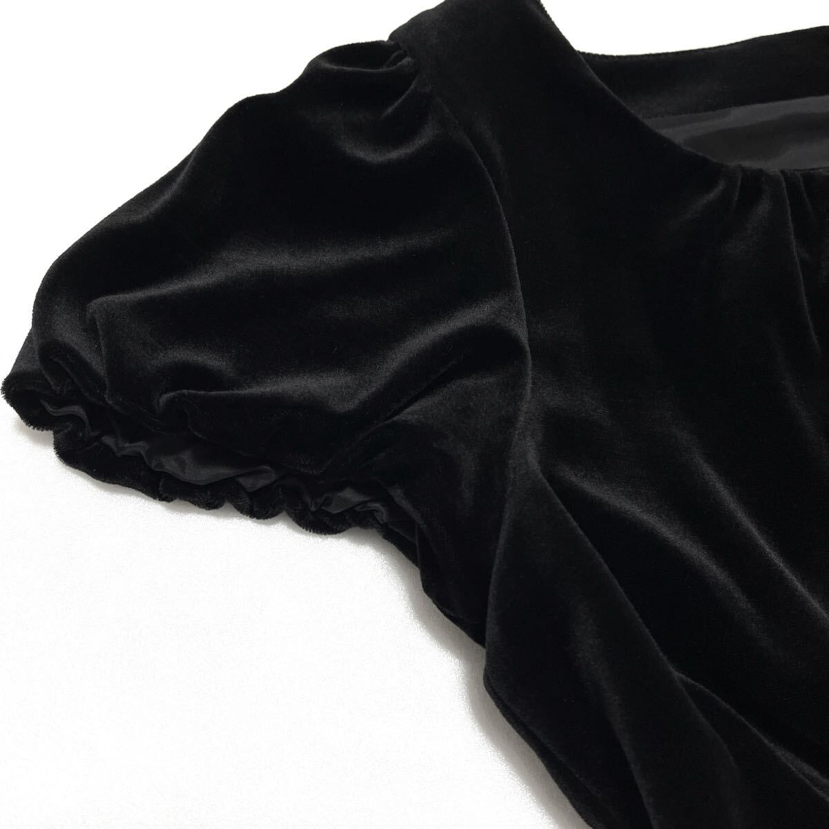 肩を覆い隠すカットのフレンチスリーブは腕を細く見せてくれ、