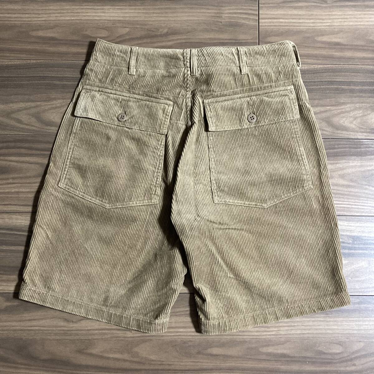 定番のFATIGUE PANTをショート丈にアレンジした春夏の人気アイテムになります。春夏では毎シーズン14w Corduroyが良く使われているのですが、2021 S/Sでは秋冬に良く使用される8w Corduroyを採用。フロントのL字ポケット、やや短めにデザインされたレングス、ポケット脇にさりげなく配されたジップポケットが特徴のショーツです。ウエストにはベルトループの他、ドローコードも付属しリラックス感のある仕上がり。ドローコードを絞る事によりサイズ微調節が可能となっております。カーキコーデュロイ素材を使用したファティーグショーツは、今のEGの春夏コレクションでは欠かすことのできないマストなアイテムになります。