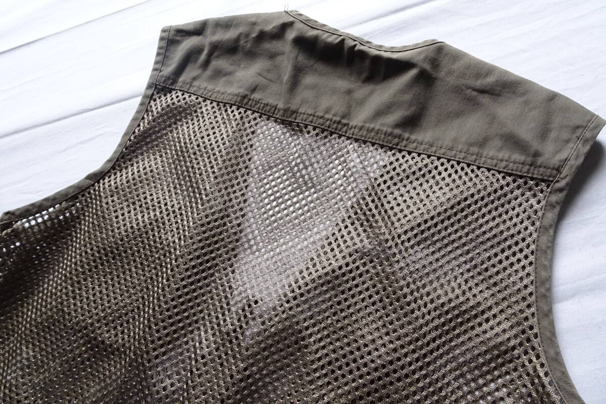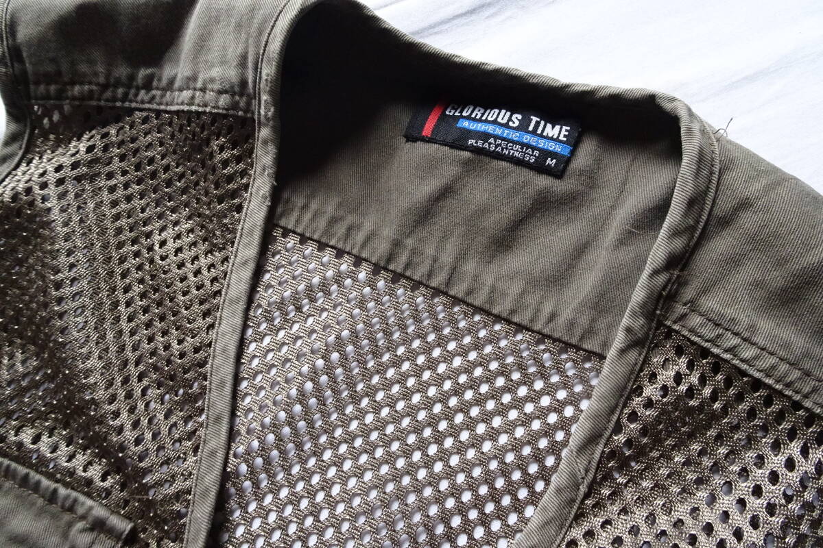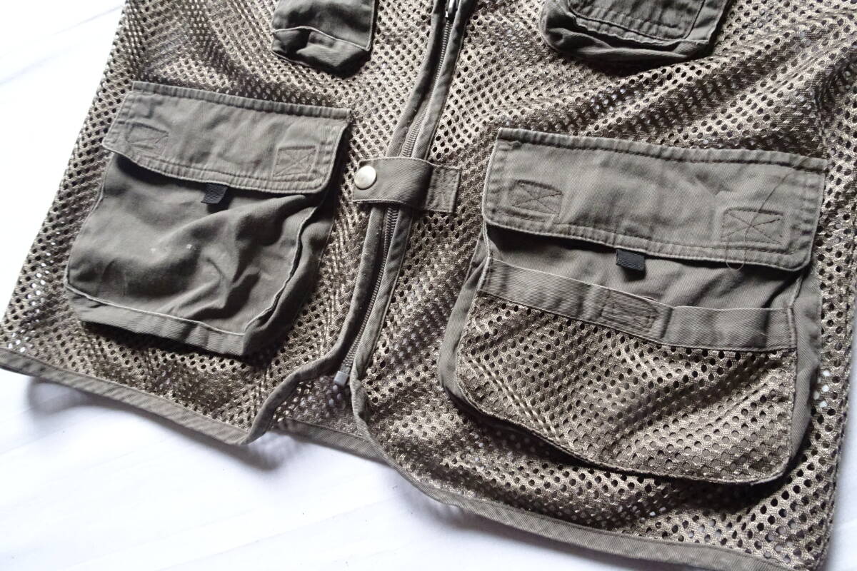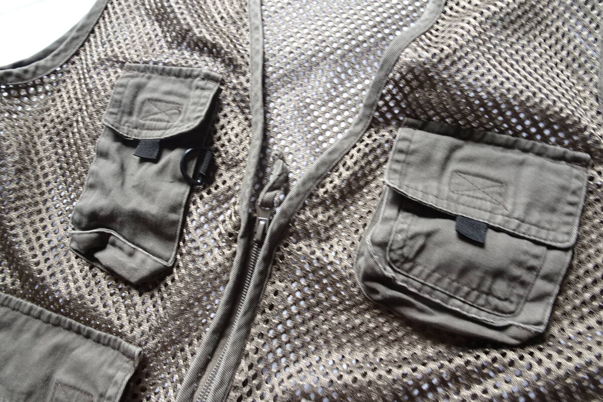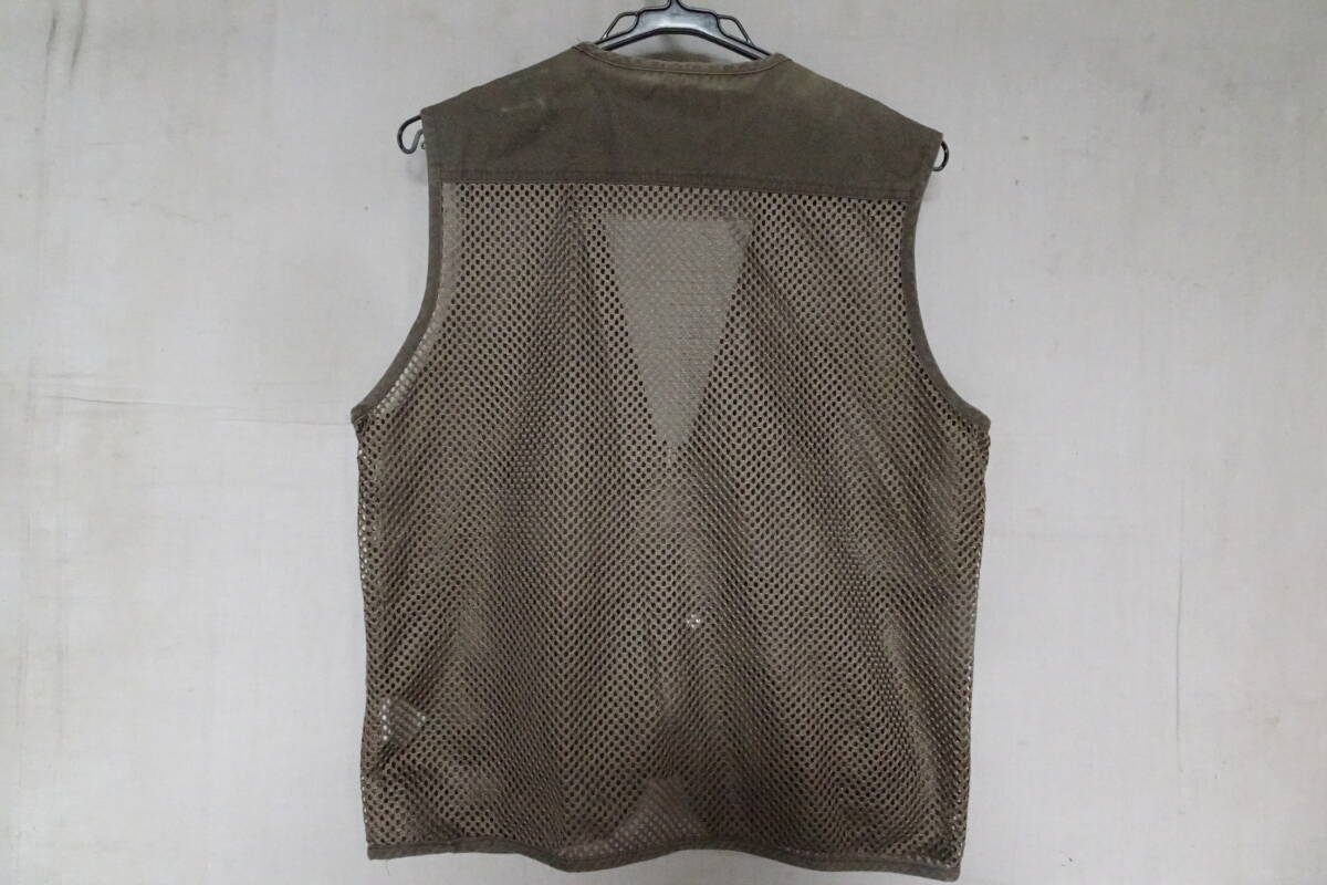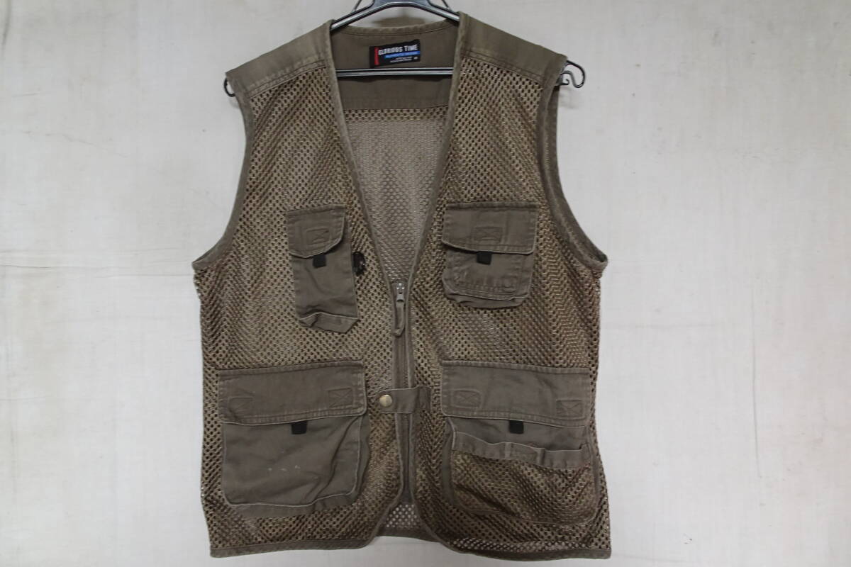 GLORIOUS TIME/アウトドアベスト/メッシュ素材/Vネック/前ジップアップ/フラップポケット/こげ茶/ダークブラウン/Mサイズ(8/5R7)