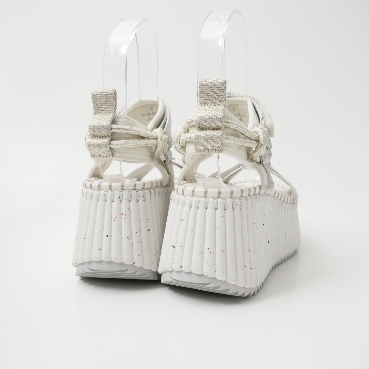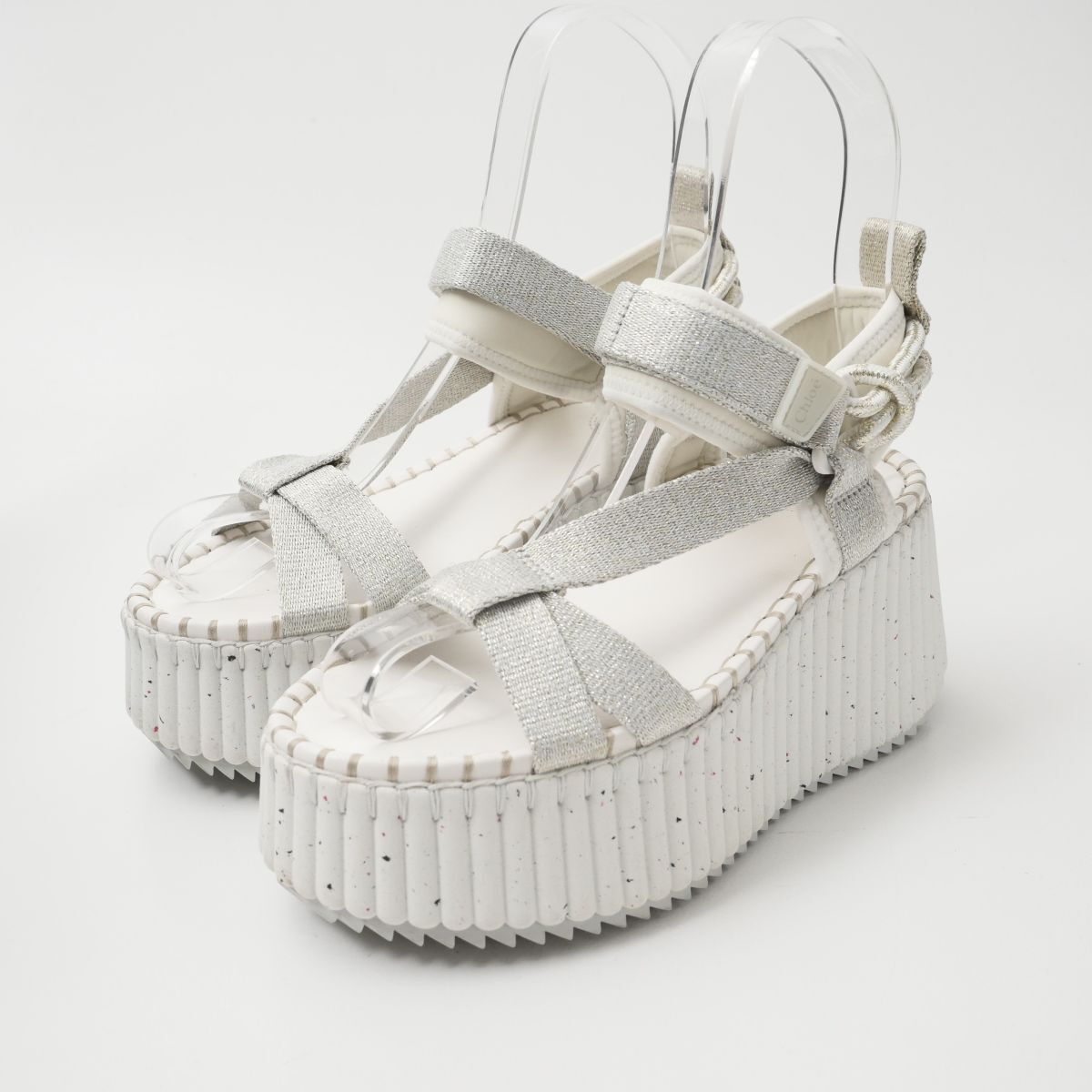 | MH9065▲Chloe/クロエ Nama ウェッジサンダル メタリック ストラップ プラットフォーム 厚底 靴 サイズ35/約22cm相当 定価約12万円 | |||