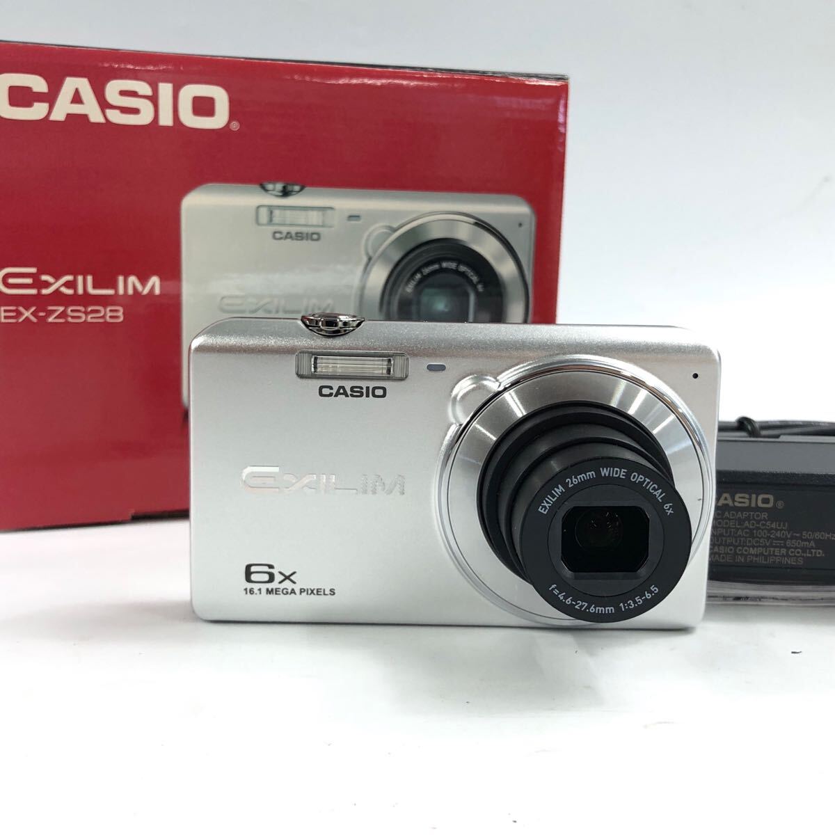 ★F03392/CASIO カシオ/デジタルカメラ/AF/EX-ZS28/EXILIM 26㎜ WIDE OPTICAL 6X f=4.6-27.6㎜ 1:3.5-6.5/箱付/シャッターOK | |