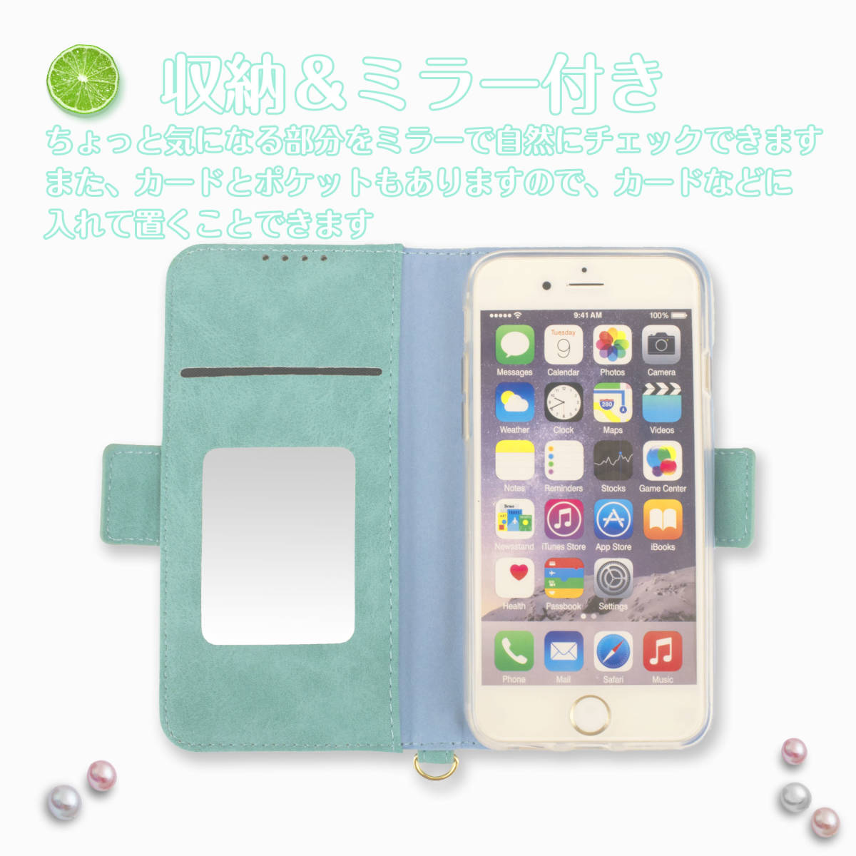 ストラップ無料プレゼント!ミラー付き 手帳型スマホケース