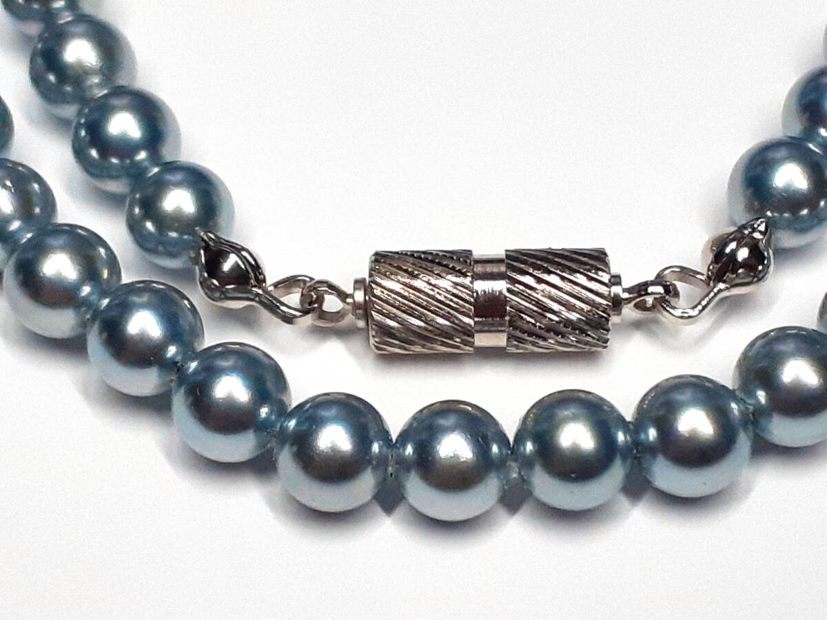 商品の ご説明 約 5,7 mm 貝磨きパールです。 玉~玉 約 40 cm ネジカン込み 約 43 cm 色目 グレー系 ----------------------------------------- ◆ 使用糸 ◆ サンエスボンド糸 テトロン S/69 (#20) 5mm~10mm までの貝パールに使用してます。 ----------------------------------------- ■ ** 貝磨きパールって? ** ■ 養殖真珠に使われてます核(挿入する貝玉)と同じ物を 使い人工的にその貝核に表面加工を施しまして 養殖真珠に模倣して仕上げました 人造真珠の傑作です。 私が作りました。 | ||