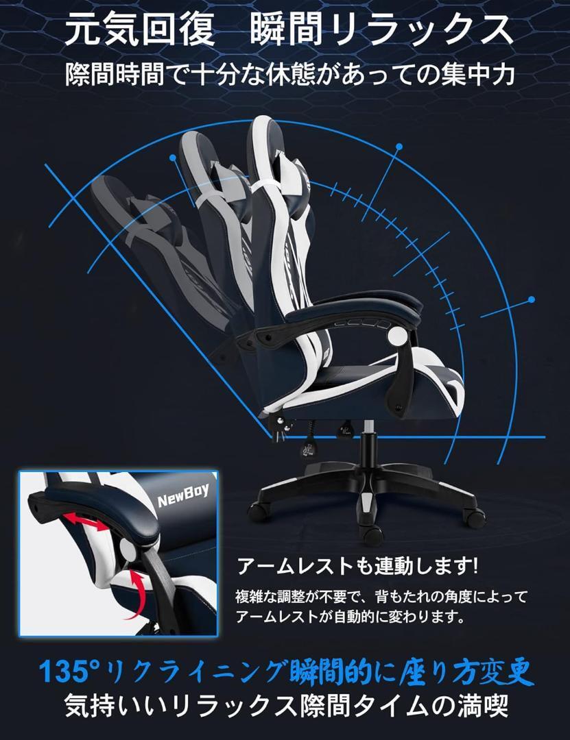 ゲーミングチェア オフィスチェア パソコンチェア リクライニングBK/WH