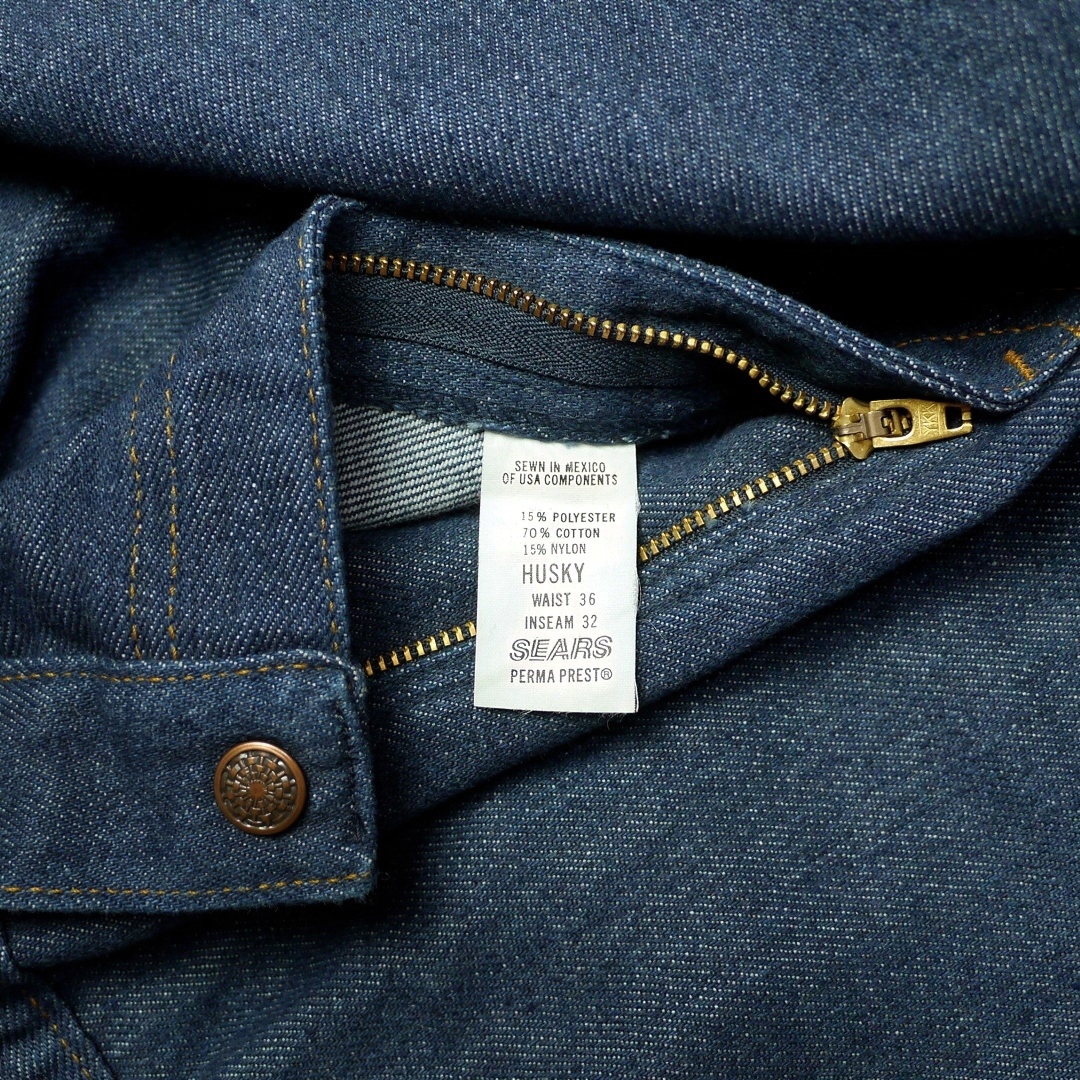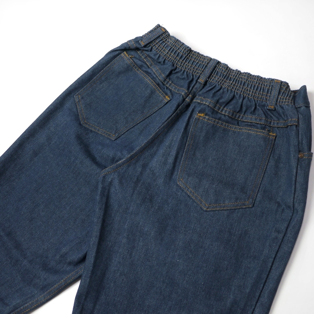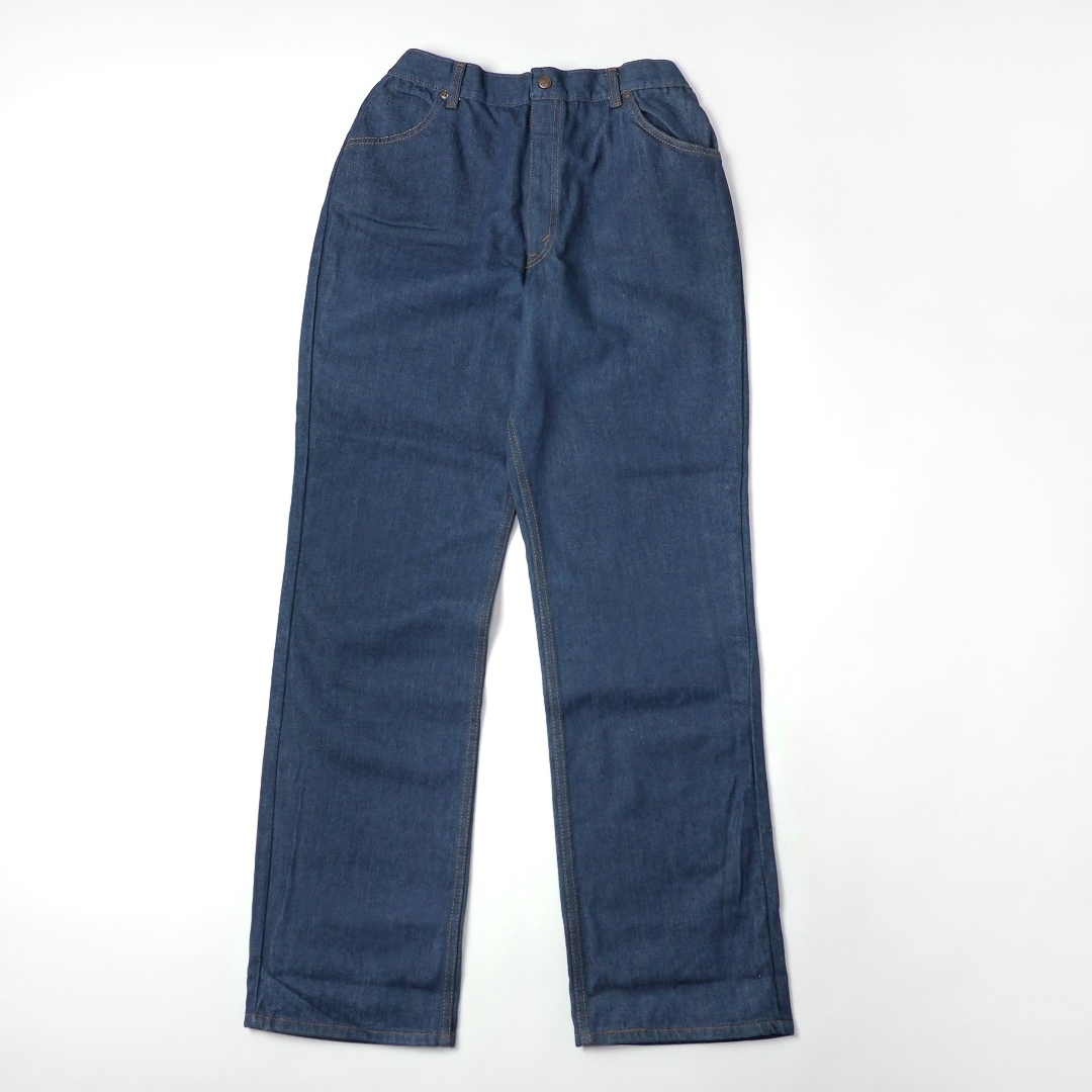 ■ブランド 90s-00s、SEARS、PERMA PREST ■カラー 濃紺 ■素材 15%POLYESTER、70%COTTON、15%NYLON ■詳細 アメリカで購入したシアーズのデニムパンツです。 90年代-00年代ごろのアイテムでいわゆるアメリカのストアブランドものになります。 生産はメキシコ製ですがまだアメリカ製パーツが使用されていた時代です。 シルエットは裾にテーパードのないストレート、ヒップ周りはユッタリとしておりウェストバックにはゴム入りです。 生地は混紡のタイプですがコットンメインですので結構シッカリとした生地感です。 ■状態 経年保管によるシワあと、両裾に折り返しあとと薄汚れ、スレーキにリベットの薄汚れ、裾上に織傷のダメージあり。特に目立つような使用感はなく全体的に良好です。 おそらく元々プレウォッシュのモデルではないかと思います。 濃紺ですのでこれからの経年変化を存分にお楽しみいただけます!! ■サイズ 表記 HUSKY W36 L32 (実寸W30-W34.5 L32.5 *下記参考下さい) ハスキーサイズなのでボーイズとメンズの中間モデルだと思います。 バックポケットは元々小さめのつくりです。 ウェスト 38cm-44cm×2 ゴム伸縮あり 股下 83cm 総丈 110cm 裾幅 23cm 股上前 34cm 股上後 38cm ワタリ 33cm ヒップ 53cm ■注意事項 状態は細かく確認しておりますが、傷や汚れの見落とし、実寸誤差、色味差異など生じる場合がございます。 不明な点がありましたら入札前にご質問下さい。 商品にあわせて洗濯やクリーニングメンテナンスを施しておりますが、ビンテージやアンティークなど中古品になりますので特性のご理解をお願いします。 |