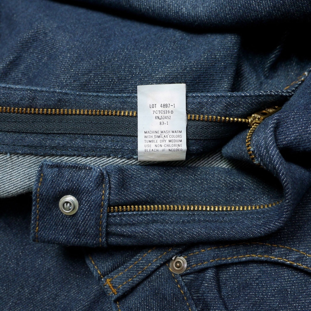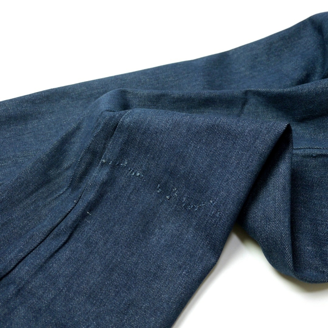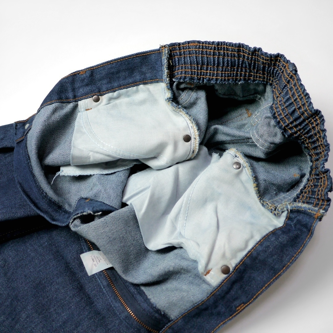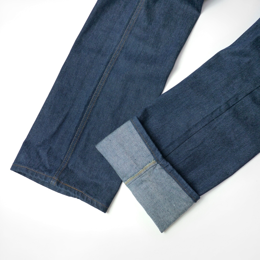 ■ブランド 90s-00s、SEARS、PERMA PREST ■カラー 濃紺 ■素材 15%POLYESTER、70%COTTON、15%NYLON ■詳細 アメリカで購入したシアーズのデニムパンツです。 90年代-00年代ごろのアイテムでいわゆるアメリカのストアブランドものになります。 生産はメキシコ製ですがまだアメリカ製パーツが使用されていた時代です。 シルエットは裾にテーパードのないストレート、ヒップ周りはユッタリとしておりウェストバックにはゴム入りです。 生地は混紡のタイプですがコットンメインですので結構シッカリとした生地感です。 ■状態 経年保管によるシワあと、両裾に折り返しあとと薄汚れ、スレーキにリベットの薄汚れ、裾上に織傷のダメージあり。特に目立つような使用感はなく全体的に良好です。 おそらく元々プレウォッシュのモデルではないかと思います。 濃紺ですのでこれからの経年変化を存分にお楽しみいただけます!! ■サイズ 表記 HUSKY W36 L32 (実寸W30-W34.5 L32.5 *下記参考下さい) ハスキーサイズなのでボーイズとメンズの中間モデルだと思います。 バックポケットは元々小さめのつくりです。 ウェスト 38cm-44cm×2 ゴム伸縮あり 股下 83cm 総丈 110cm 裾幅 23cm 股上前 34cm 股上後 38cm ワタリ 33cm ヒップ 53cm ■注意事項 状態は細かく確認しておりますが、傷や汚れの見落とし、実寸誤差、色味差異など生じる場合がございます。 不明な点がありましたら入札前にご質問下さい。 商品にあわせて洗濯やクリーニングメンテナンスを施しておりますが、ビンテージやアンティークなど中古品になりますので特性のご理解をお願いします。 |