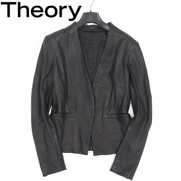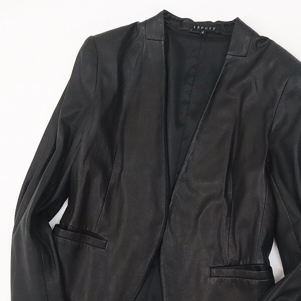 | 【FA497】◆Theory セオリー ラムレザー 羊革 ボタンレス ノーカラー ジャケット 黒 ブラック 2 | |
