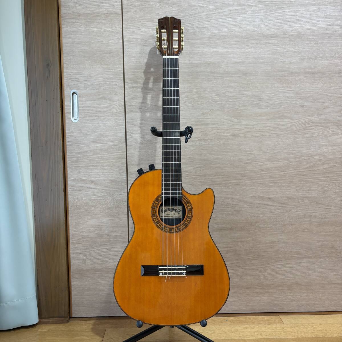 珍しいソリッドボディのナイロン弦ギター・エレガットになります。