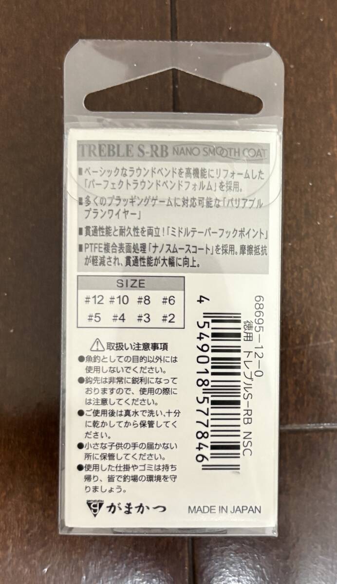 【 新品・半額 】がまかつ トレブル S-RB スタンダードラウンドベンド #12 徳用パック (18本入り)