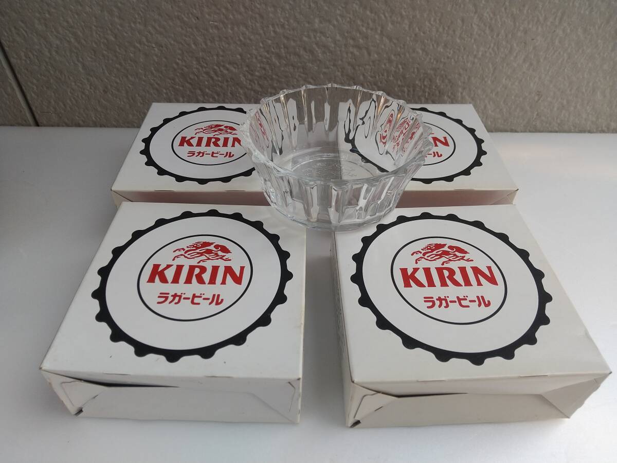 即決【未使用】4個 KIRIN 王冠型小鉢 キリン ★キリンラガービール 小皿 ガラス製品 ★紙箱は付きません。