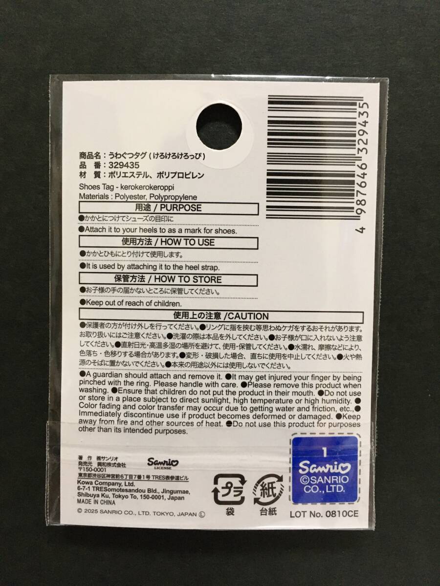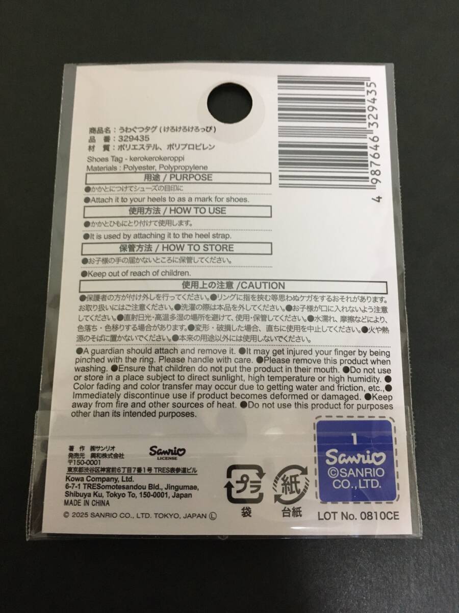 SANRIO/サンリオ うわぐつタグ けろけろけろっぴです☆彡新品未開封品です!