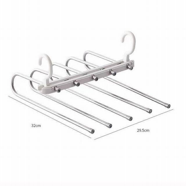 【商品サイズ】:写真をご参照ください。 ズボンを掛けた状態でも折りたたむことができ、スペースを節約したいときにおすすめ。 吊り下げ棒が5本付属しているので最大で5着掛けることができます。 手前に引っ張るだけだから、取り出しがスムーズ ハンガー部分はステンレスを使用し耐荷重約15㎏なので,重たいズボンでも変形しにくいです。