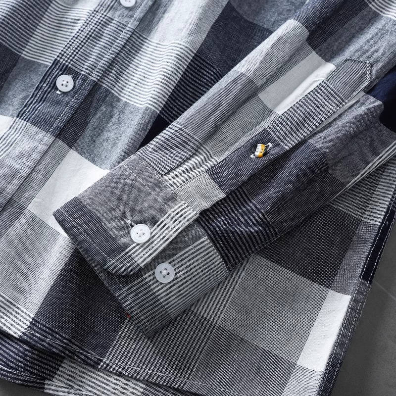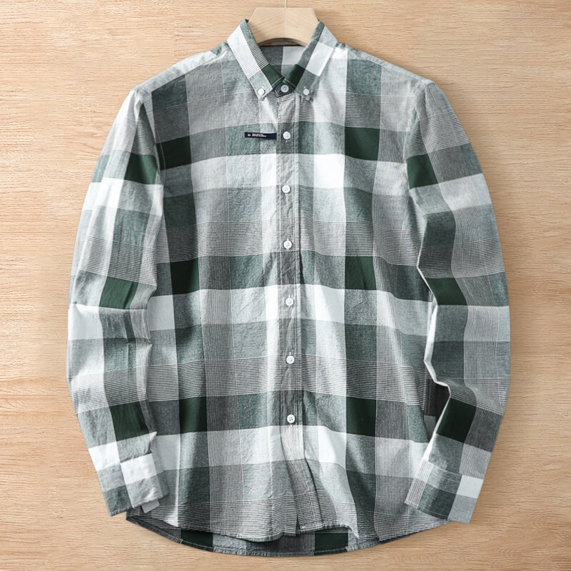 Y6202-L グリーン 新品 DCKMANY 格子柄シャツ 先染め 綿100% ウォッシュ加工 長袖シャツ メンズ 春夏秋 コットン ボダンダウン ワイシャツ
