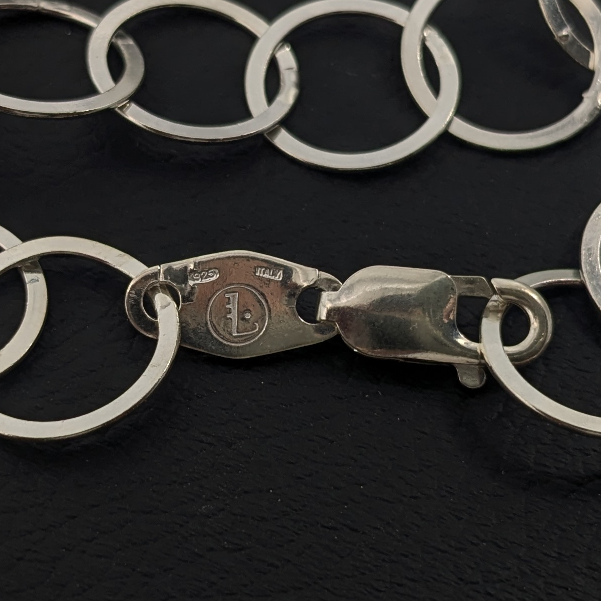 | 商品説明 | 素材:シルバー925 (スターリングシルバー) 産地:イタリア 年代: 全長約19.4cm、幅約2.3cm、重量約10.2g 出品前に検品をしておりますが、見落としがある可能性もございます。 |