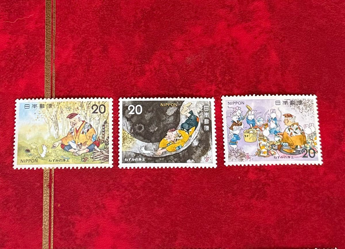 未使用 昔話シリーズ ねずみの浄土 20円 3種 切手