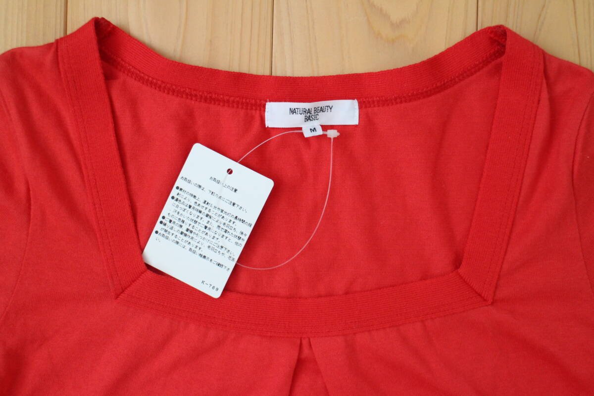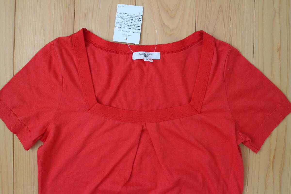 新品人気*NATURAL BEAUTY BASICナチュラルビューティーベーシック*大人可愛いスクウェアタイプコットンニットTシャツM赤
