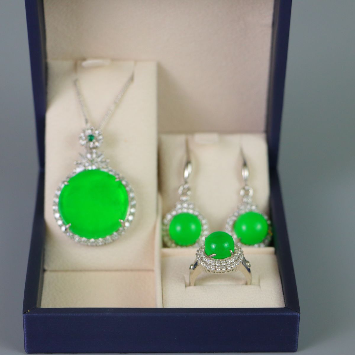 永し中国唐物 高氷 翡翠彫 帝王緑 三件套 ペンダント 極細工 根付 裝身具 置物擺件 古美術品 時代物 極美 収集家 A36