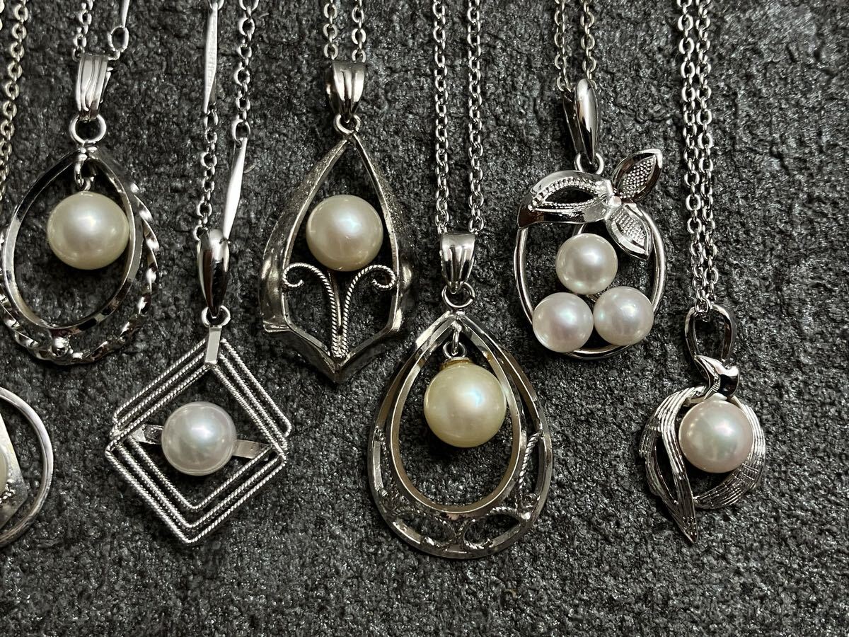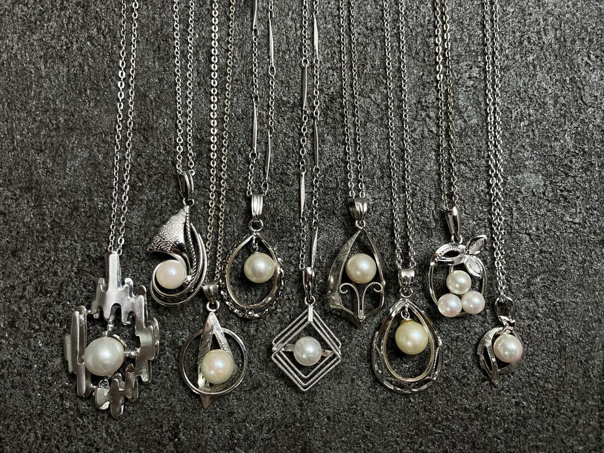 A114 全てアコヤ真珠 本真珠 パール ネックレス ペンダント 9点セット SILVER含む シルバー ヴィンテージ アクセサリー 大量 まとめ売り